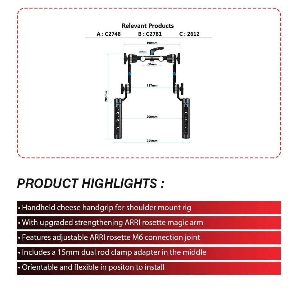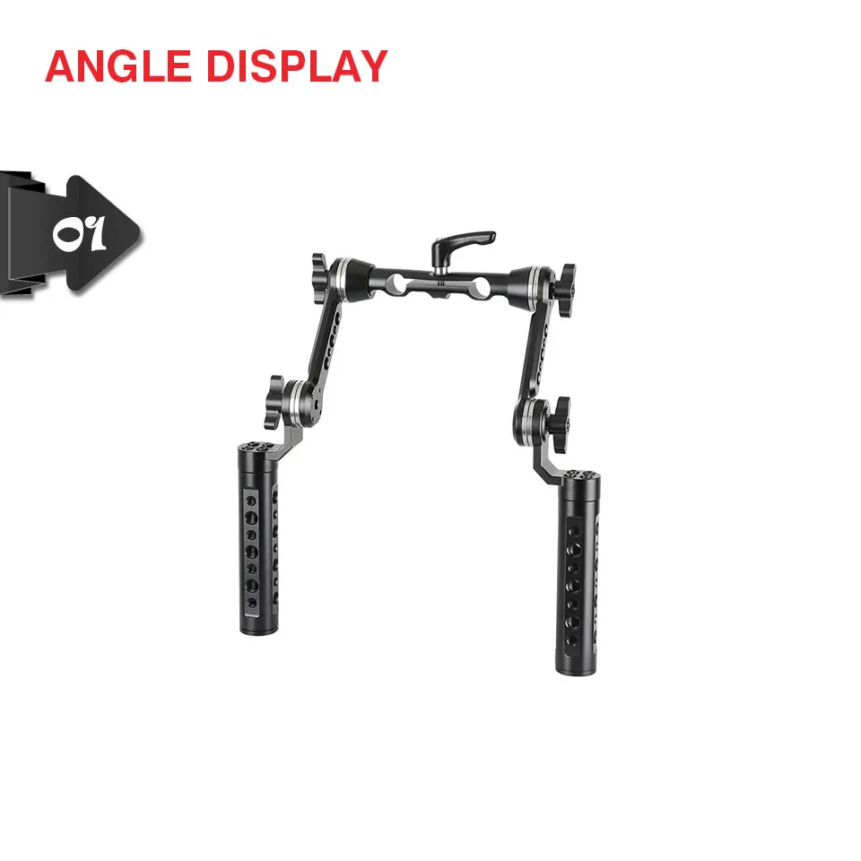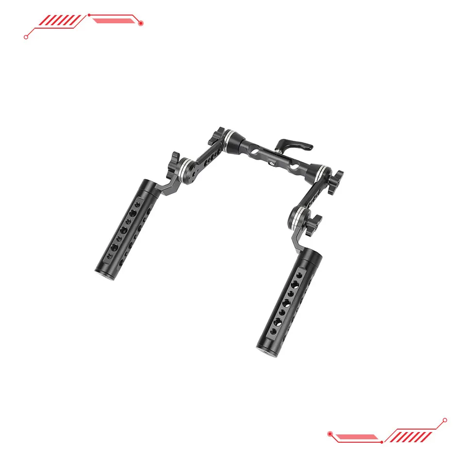• Пара ручного крепления CAMVATE для крепления на плече DSLR является улучшенной версией качества на основе предыдущих версий. Он оснащен усиленным волшебным рычагом и более твердой рукояткой блокировки wingnut в середине 15 мм railblock.