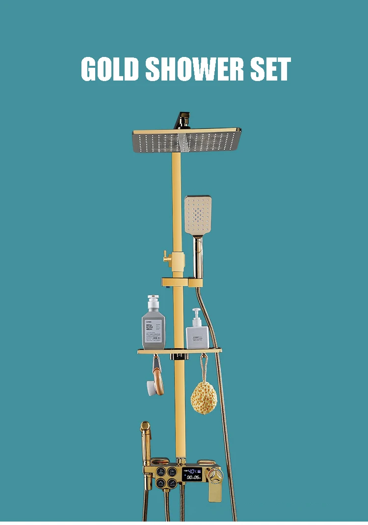 Золотой цифровой смеситель для душа система ванная комната горячая холодная термостатическая Ванна набор настенное крепление спа смеситель дождь кран Ванна Роскошные Torneiras