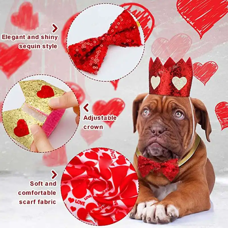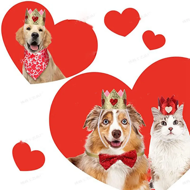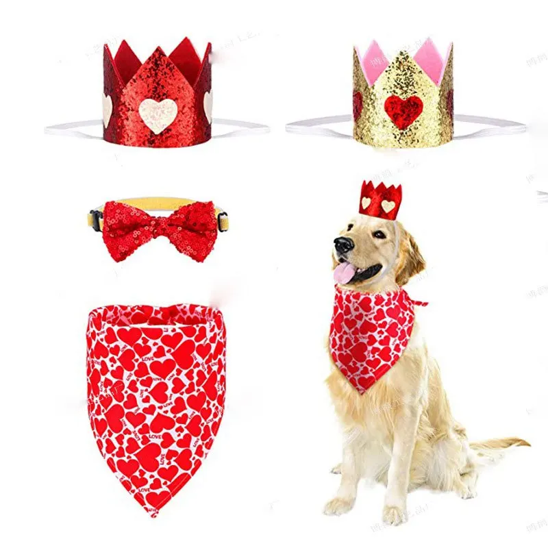 Новый набор украшений для домашних животных на День святого Валентина, Слюнявчик с короной для собаки, платье на День святого Валентина