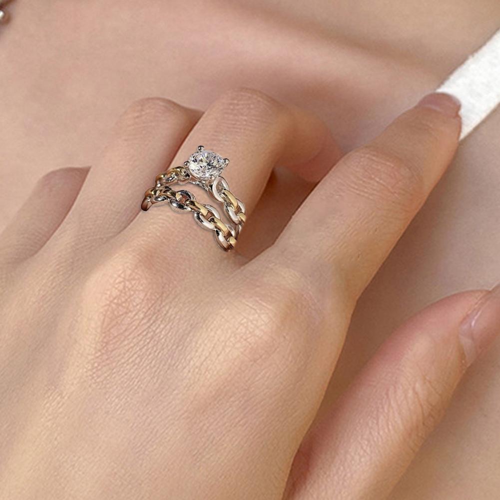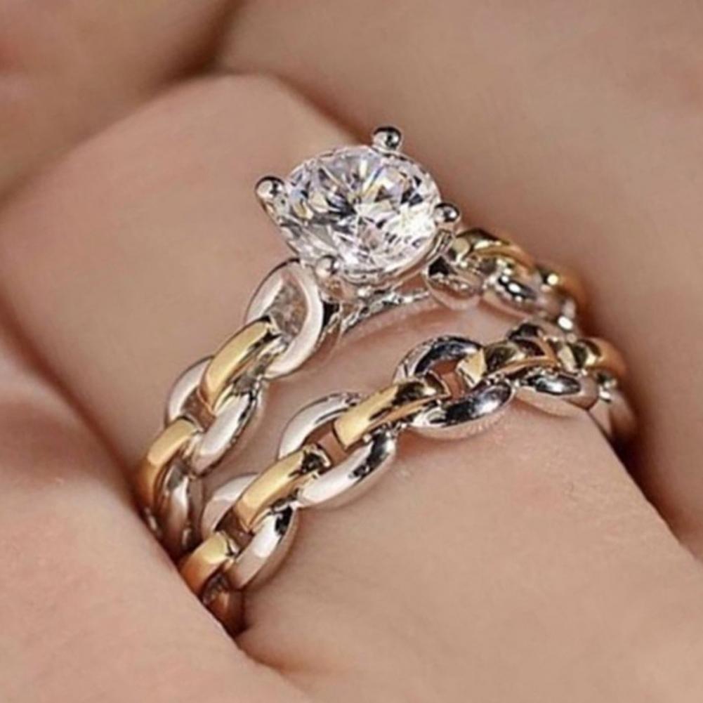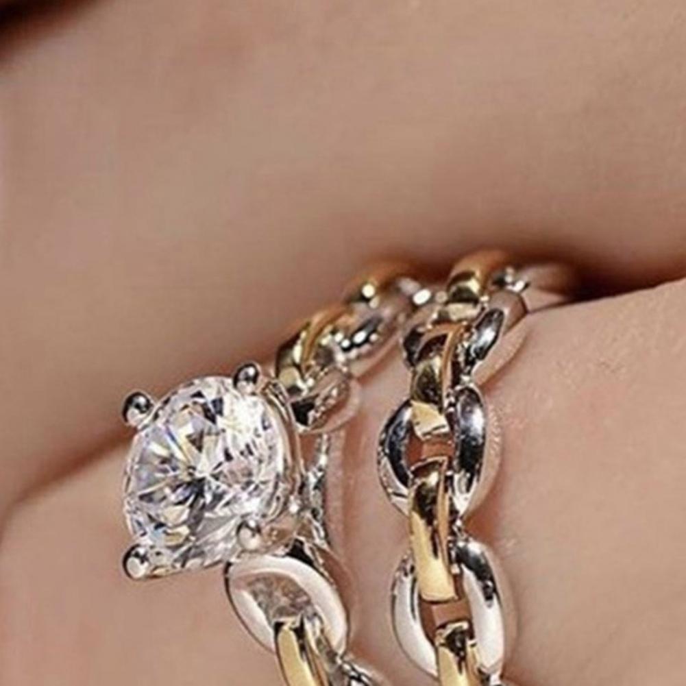 Обручальные кольца имеют двухцветную цепочку и блестящие стразы, которые уникальны и стильны и придают вам модный вид.