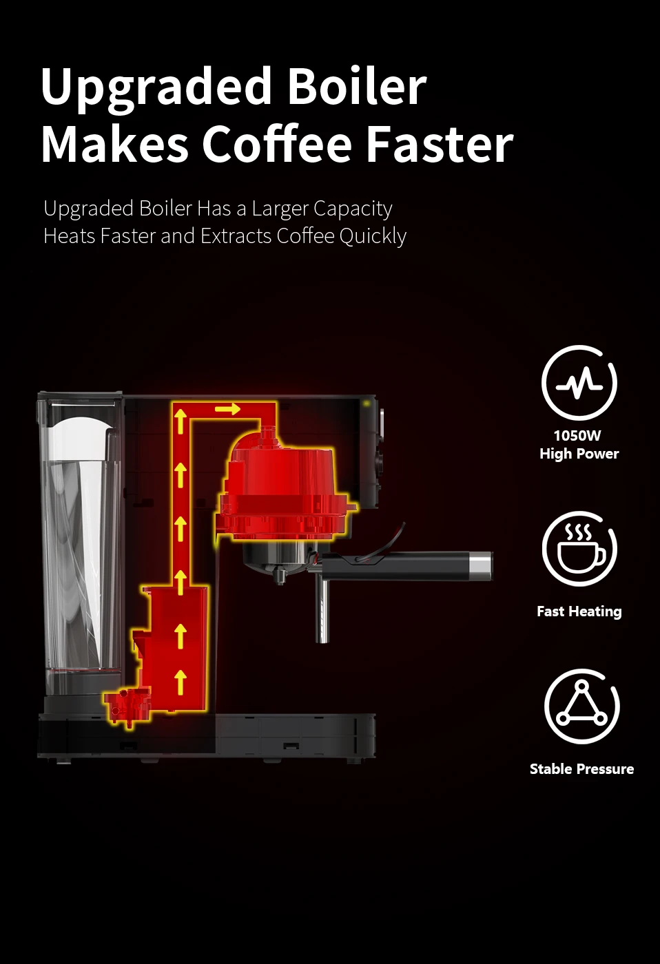 Модернизированный котел имеет большую емкость, нагревается быстрее и быстро извлекает кофе.
