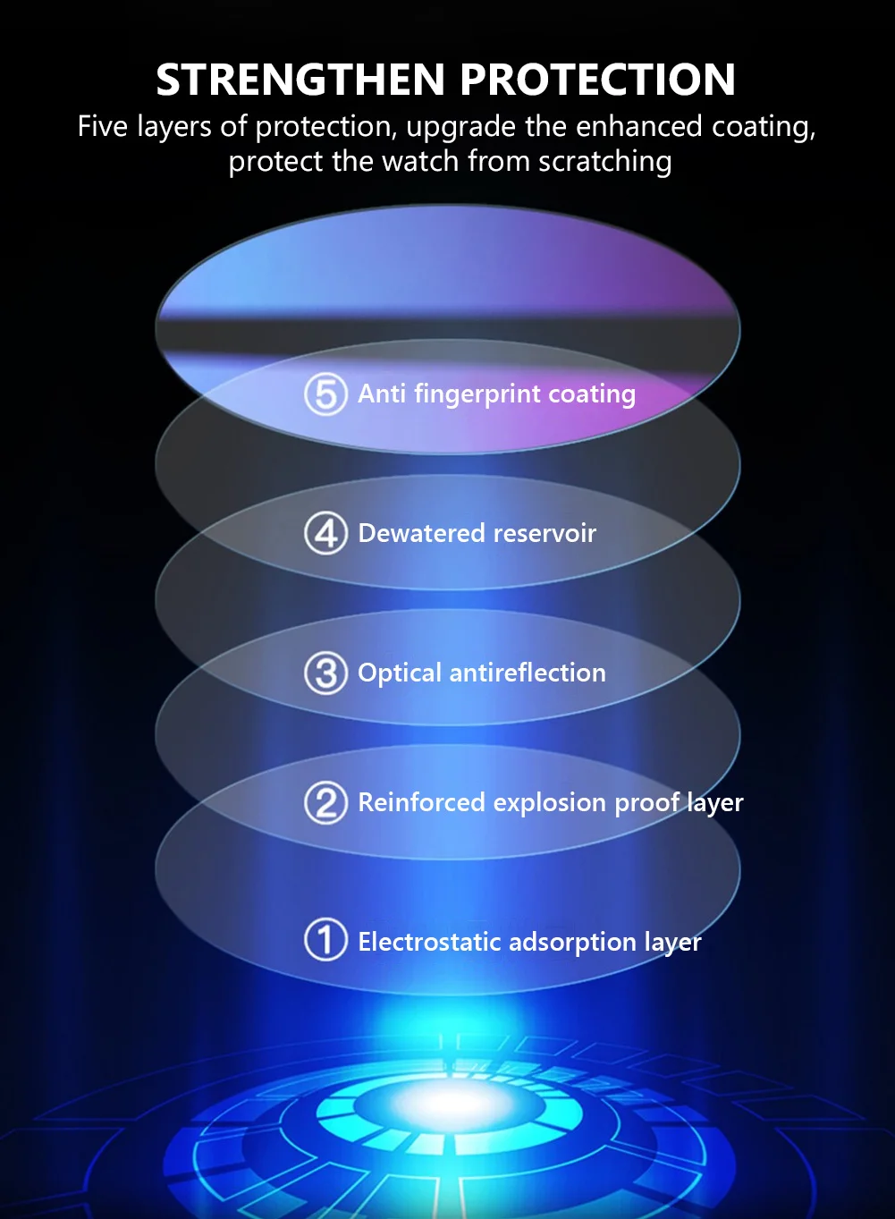 Защита глаз. Защитная пленка имеет слабый фиолетовый отраженный световой эффект, который может защитить ваши глаза, сделав часы более красивыми и модными.