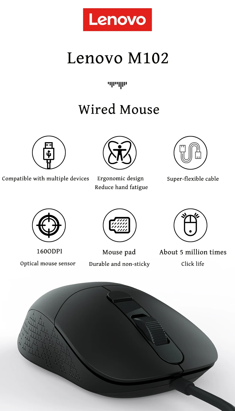 Оригинальная проводная мышь Lenovo M102 с тремя скоростями DPI офисная игровая мышь USB Проводная мышь чувствительное управление компьютерные аксессуары