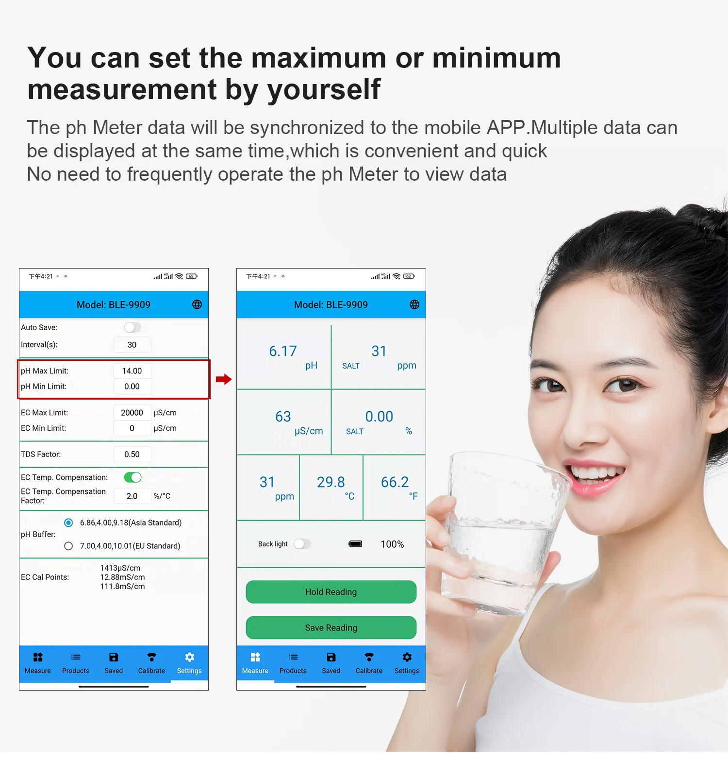 2022 pH метр с Bluetooth, питание от мобильного приложения YINMIK, профессиональное измерение PH/TDS/EC/солености/температуры (℃/℉). Подходит для бытовой питьевой воды, гидропоники, лаборатории, аквариума