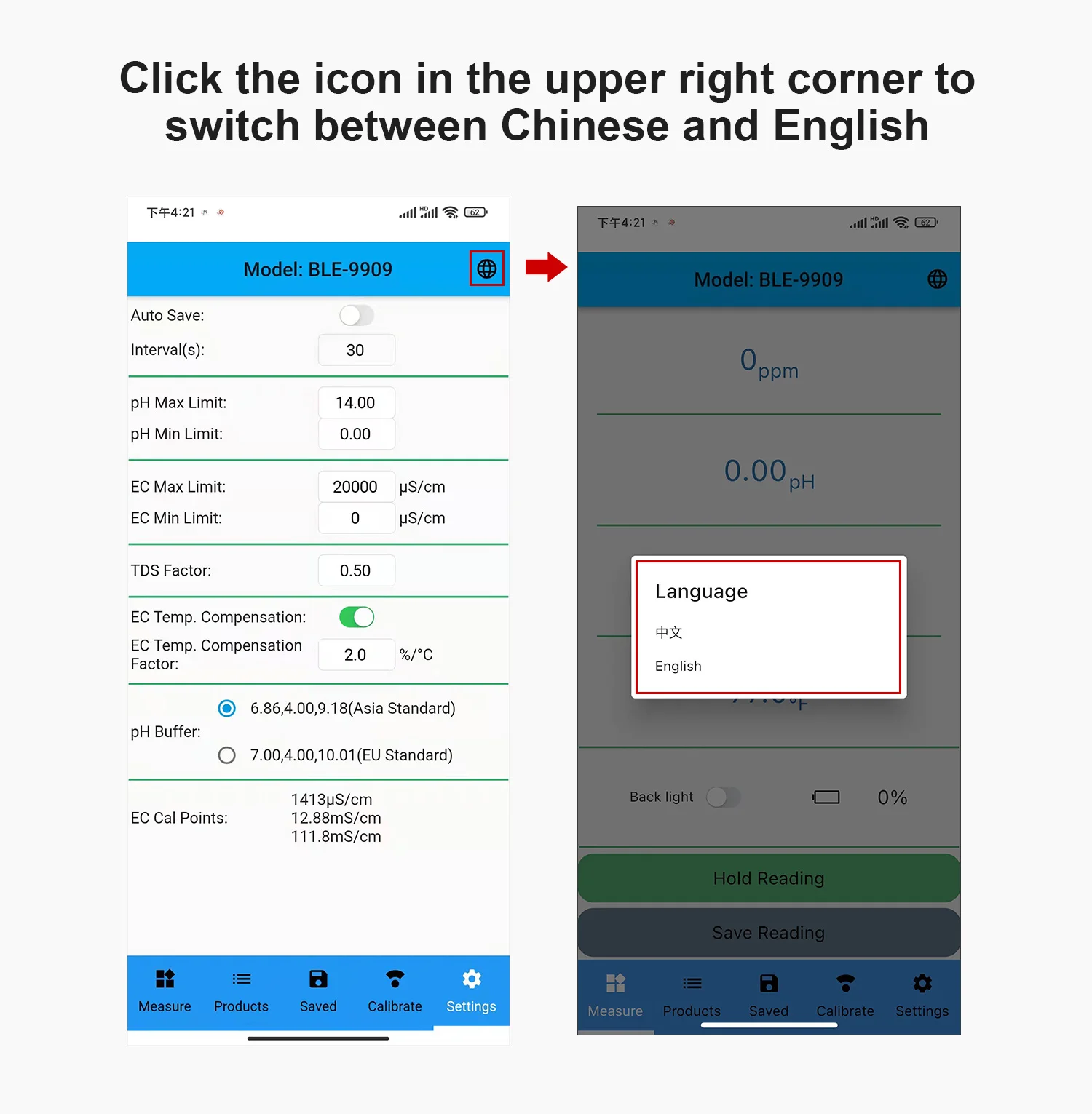 Диапазон EC: 0-9999us/см, 10,01-19,99 мс/см