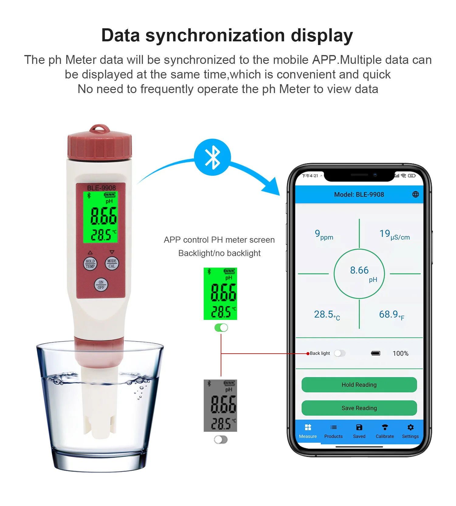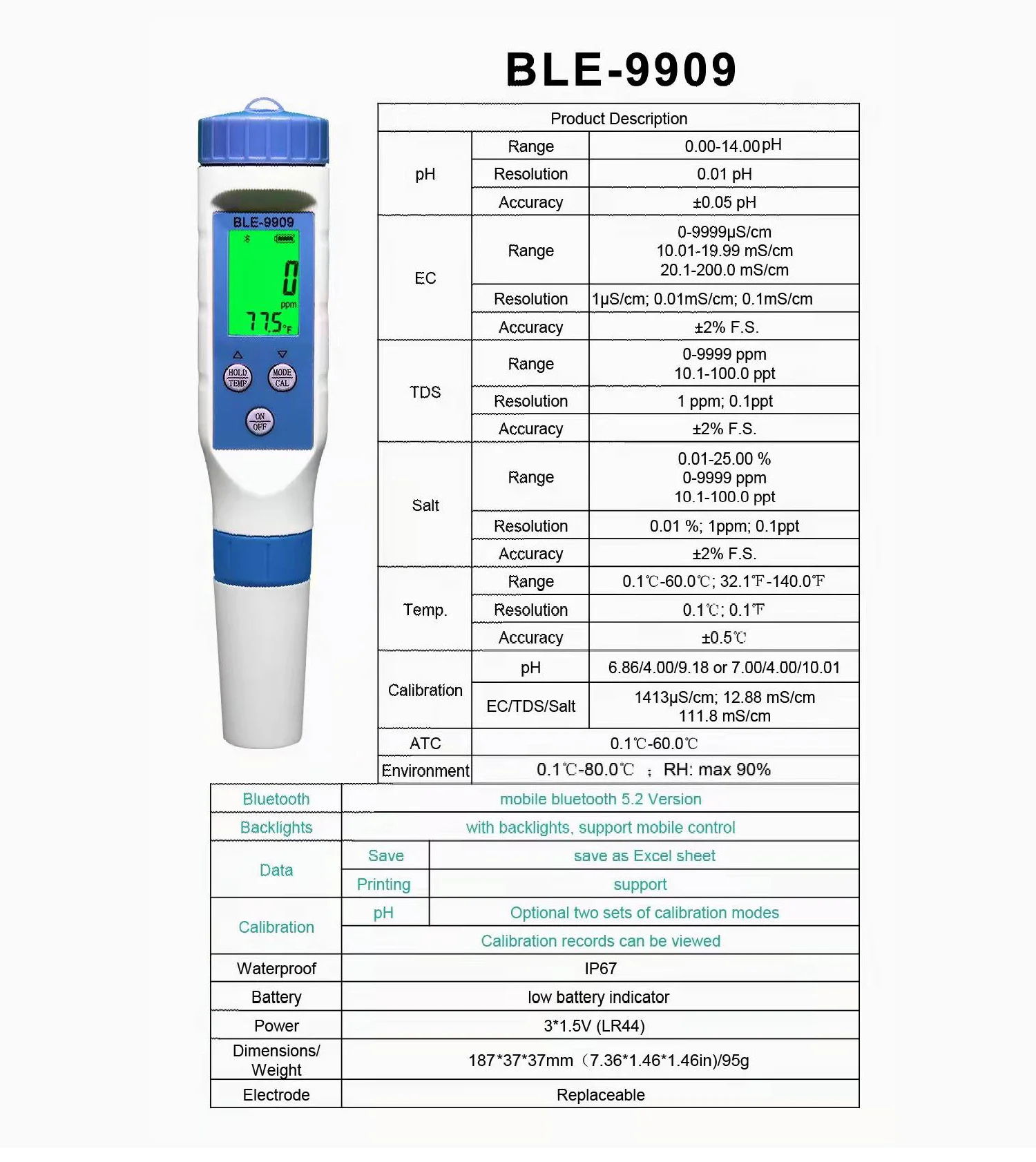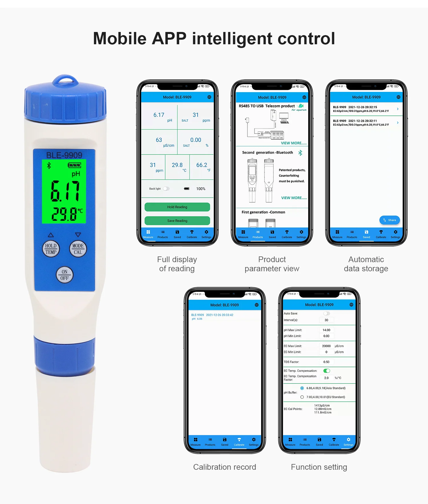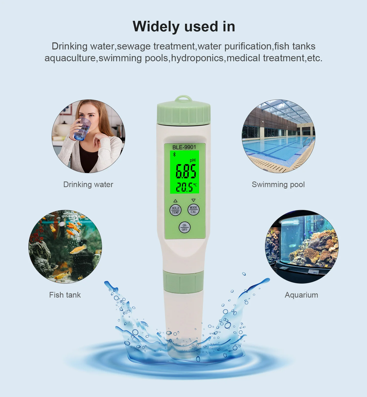 BLE-9909 Bluetooth 5 в 1 PH EC TDS измеритель температуры солености цифровой тестер качества воды умный онлайн-монитор управление приложением для аквариумов бассейна