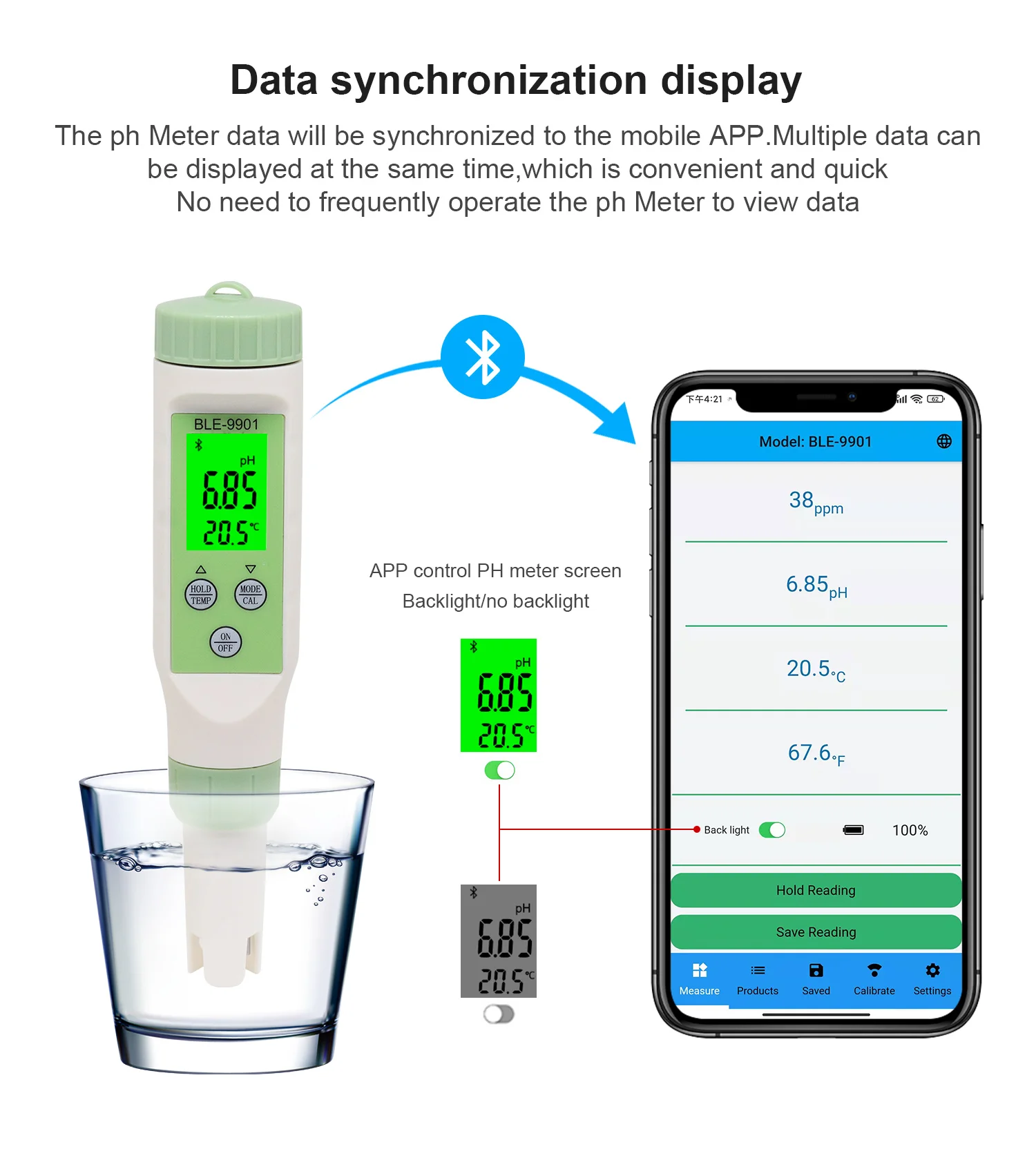 Синий зуб 3 в 1 PH EC измеритель температуры цифровой тестер качества воды умный онлайн монитор управление приложением для аквариумов бассейна