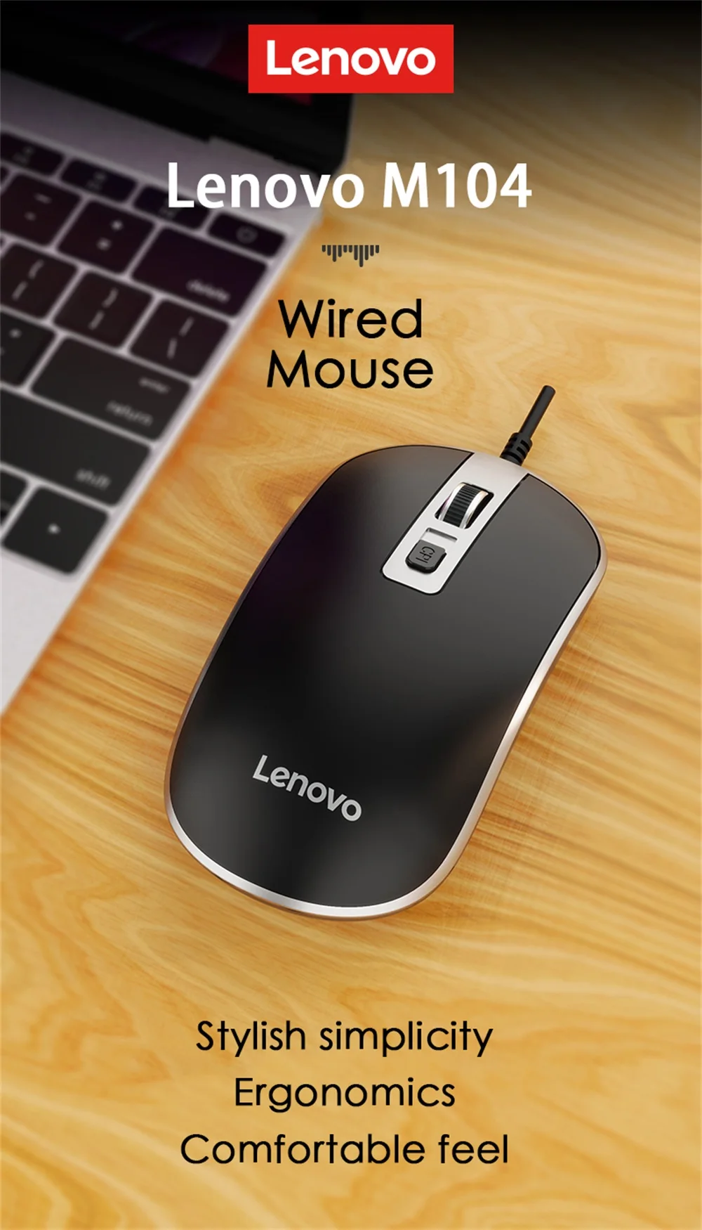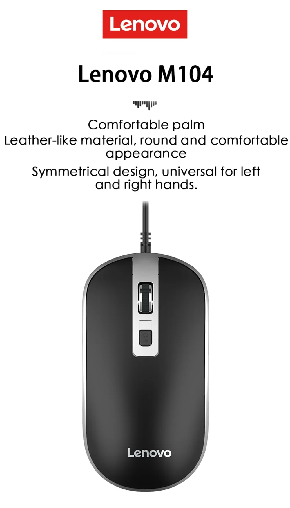 Новое поступление, проводная мышь Lenovo M104, компьютерное управление, компьютерные аксессуары, Офисная игровая мышь 1000 точек/дюйм, малый вес