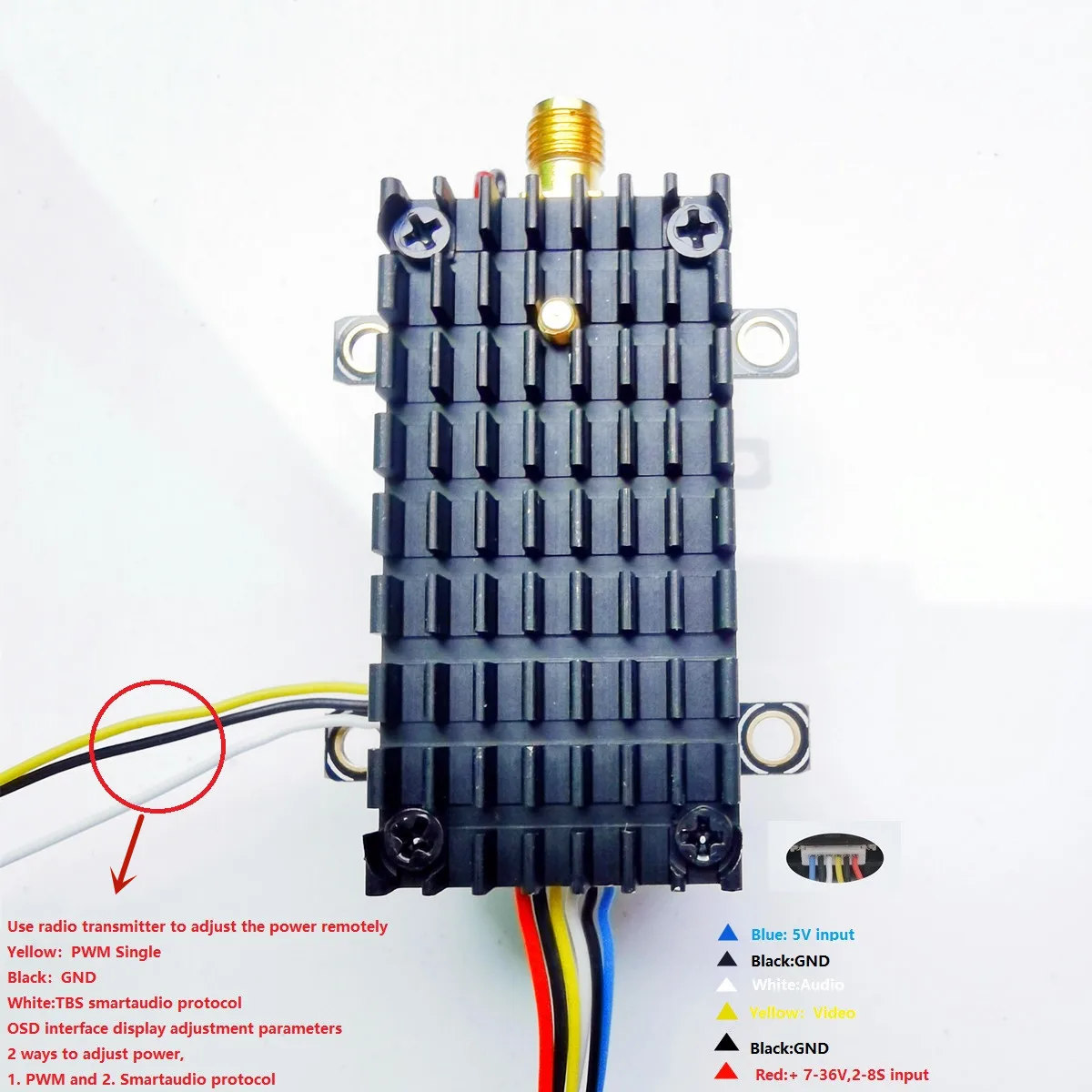 Выходная мощность: 2000 МВт Рабочее напряжение: 8-25 В (2S-6S) Рабочий ток: 800 мА (12 В тестирование) канал: 24 канала Формат видео: NTSC/PAL Выходное напряжение: 5 В/Входное напряжение (выбор перемычки) интерфейс антенны: SMA (внутренний штифт внешней резьбы) Вес: 30 г