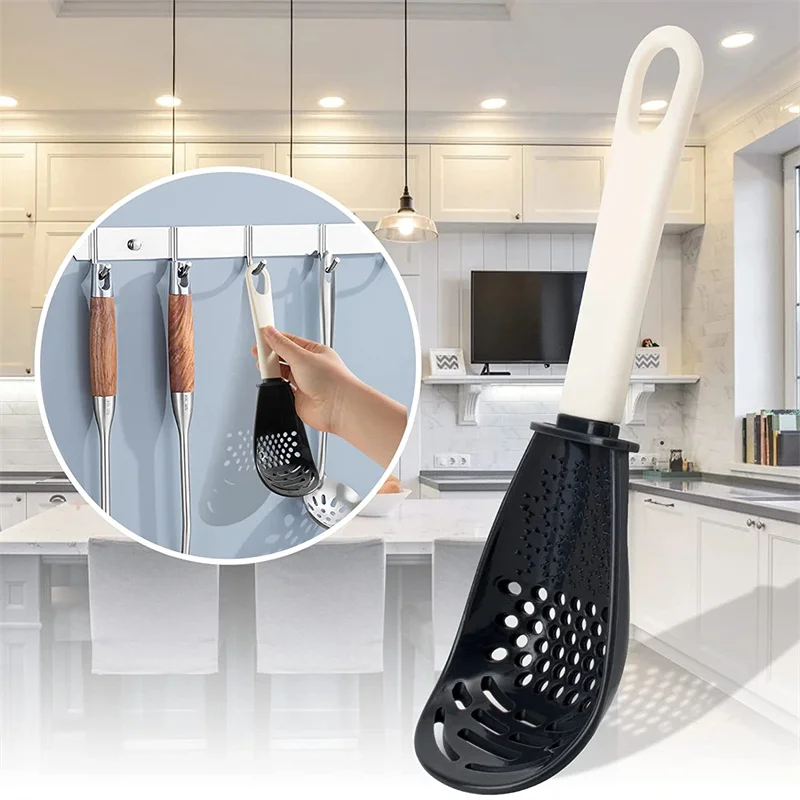 Многофункциональная ложка для приготовления пищи: используется для кипячения, слива, разбивания, разбивания картофеля или бобов. Он также имеет функцию яичного пистолета. Маленькая конструкция отверстия может использоваться как дуршлаг, а другой конец также может использоваться как обычная ложка.