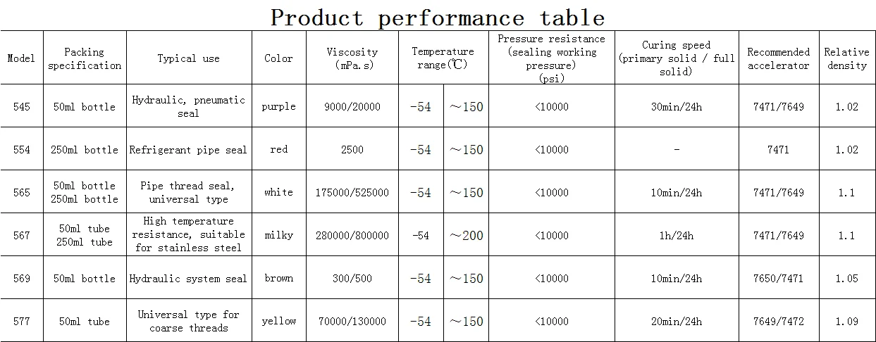 Высокая вязкость, отличная стойкость к растворителям, подходит для герметизации конической трубной резьбы. Его можно использовать в машинном оборудовании пищевой промышленности и газопроводах.