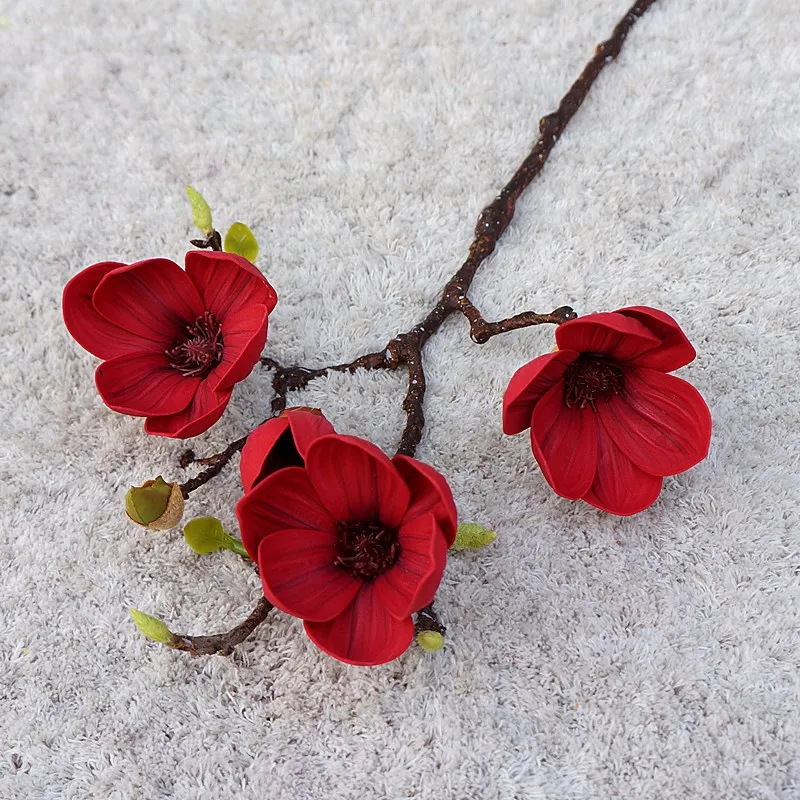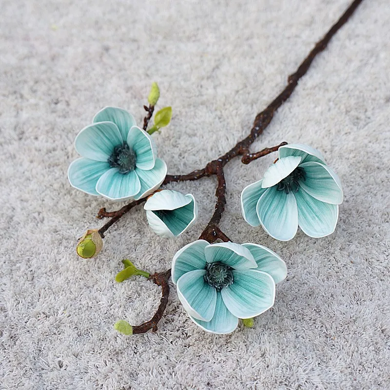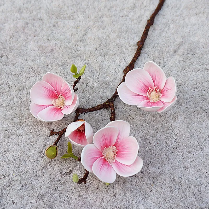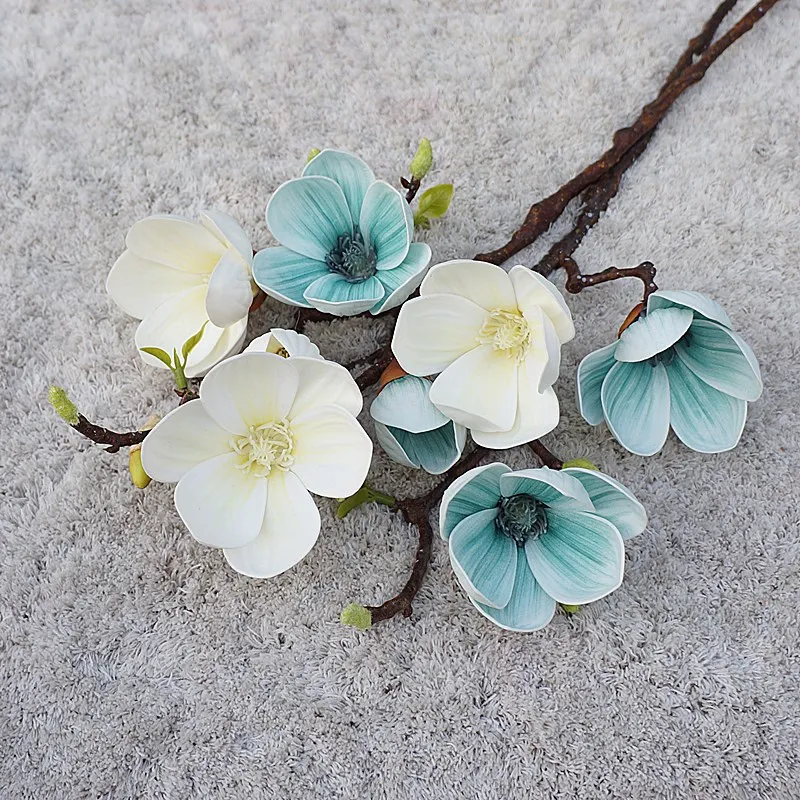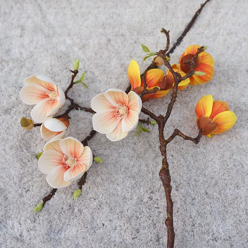 Роскошные 3 головки золотисто-белые ветки магнолии настоящие Сенсорные Искусственные цветы