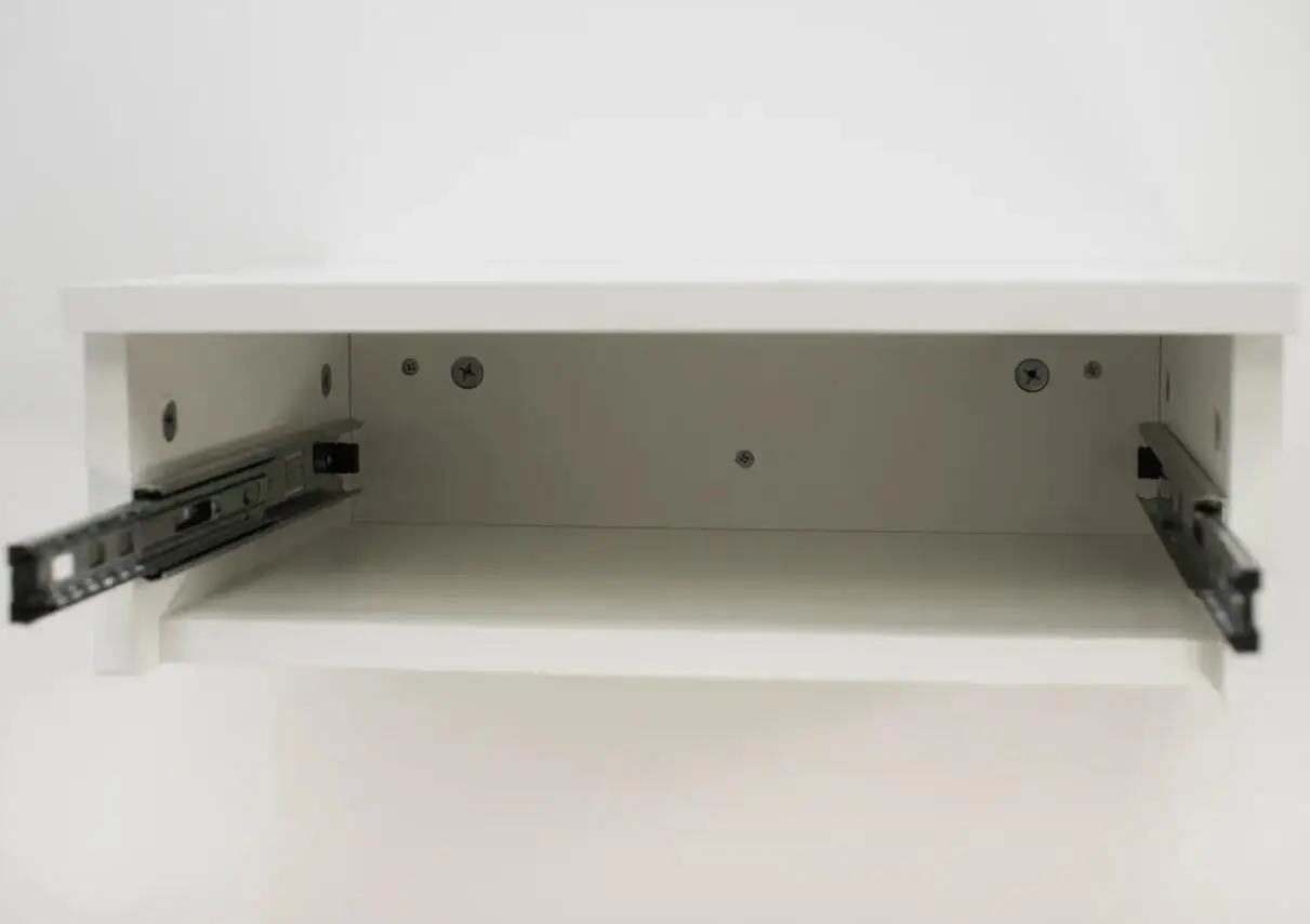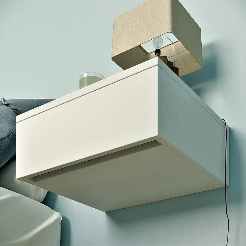 Гладкий, легкий и Высокофункциональный прикроватный столик для настенного крепления! Открытие ящика-сзади спереди: для этого имеется небольшое углубление для пальцев на нижней стороне шкафа.