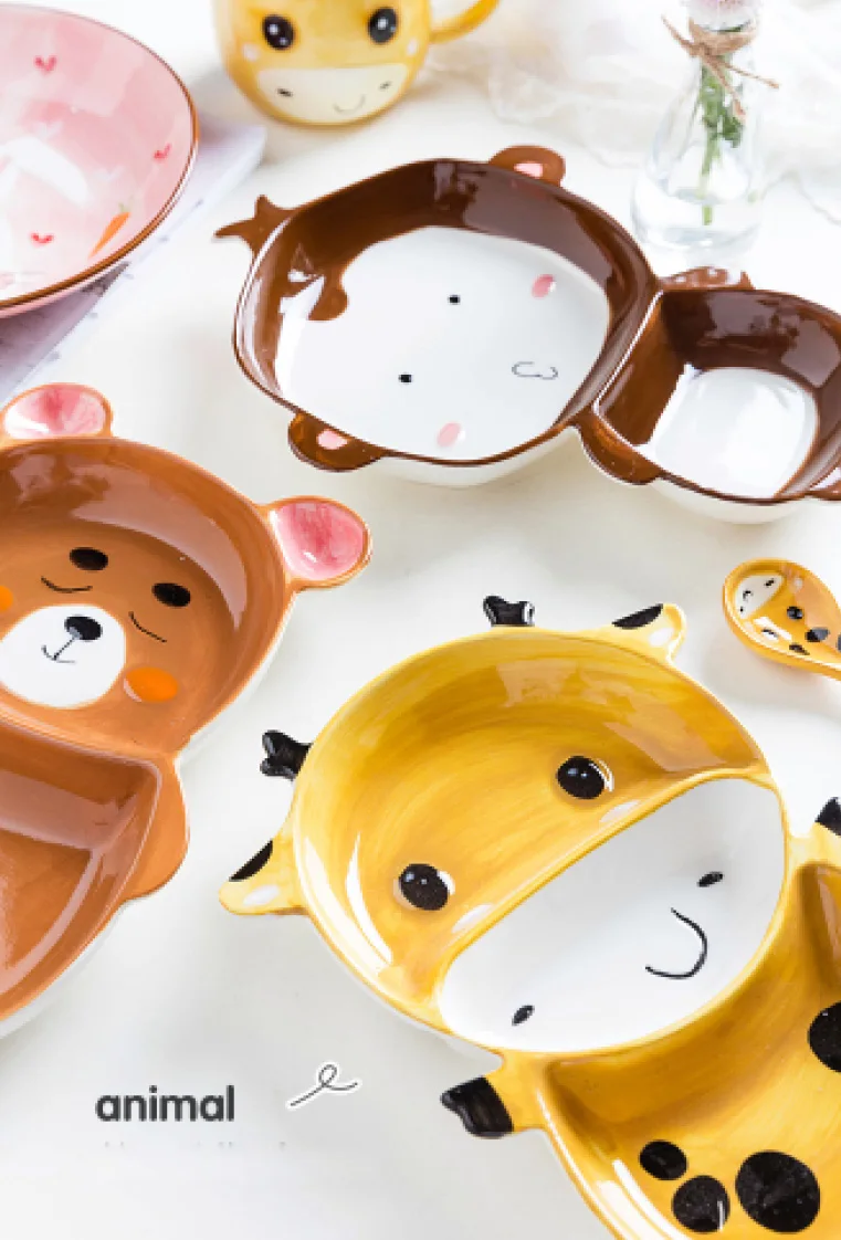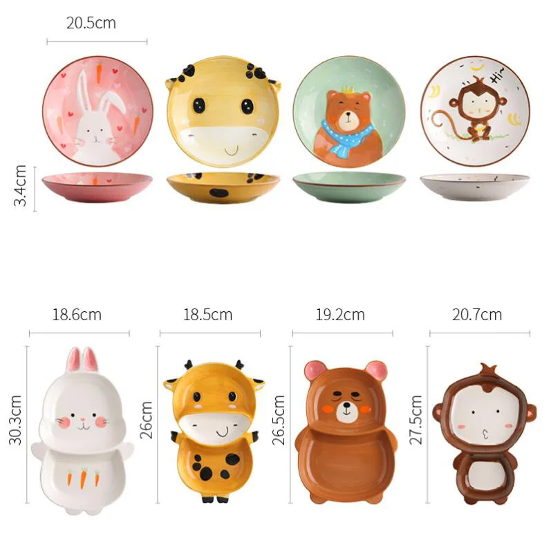 Милая Керамическая пиала для риса с животными, детская посуда, мультяшная тарелка для завтрака, Детская домашняя чаша для салата с фруктами в отеле