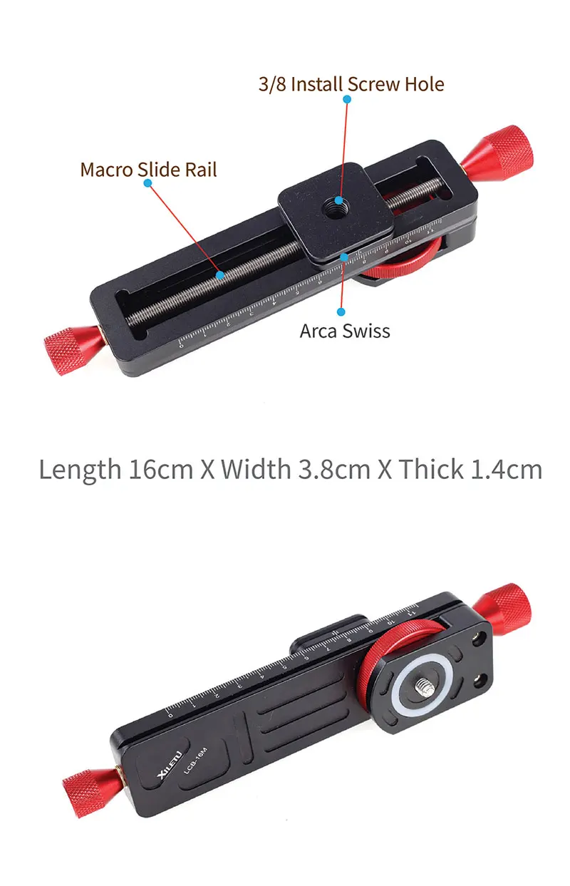 DESIGNE: The Macro Focusing Rail Slider Plate Precision focusing through a 115mm adjustment range, With two Control knob can be convenient to Manual regulation, Helping to achieve exacting camera-to-subject distance