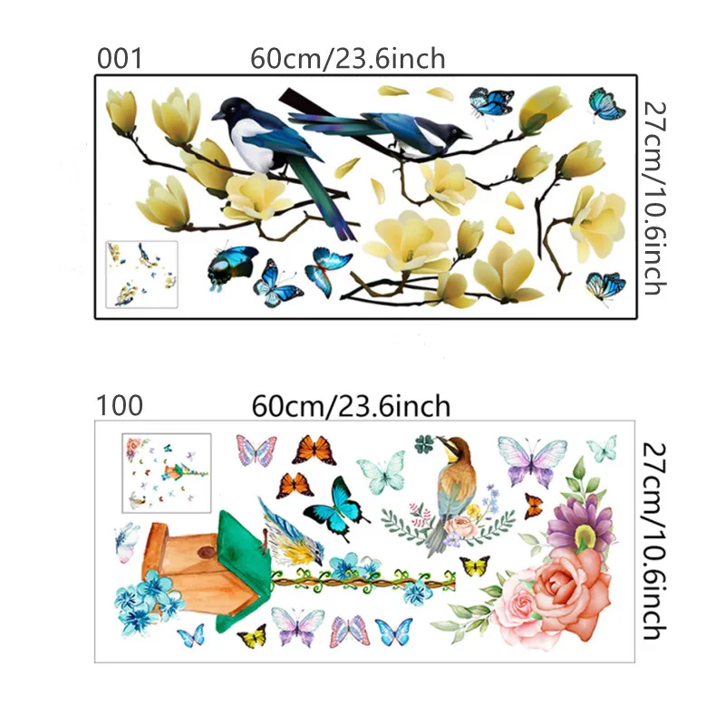 Настенные наклейки, наклейки для птиц, наклейки для птиц, наклейки на окна, стеклянные наклейки, наклейки для бабочек, наклейки для бабочек, цветы. Цветочный декор, гостиная, наклейки на окна, спальня, детская комната, детская комната, стекло, стеклянные наклейки на окна