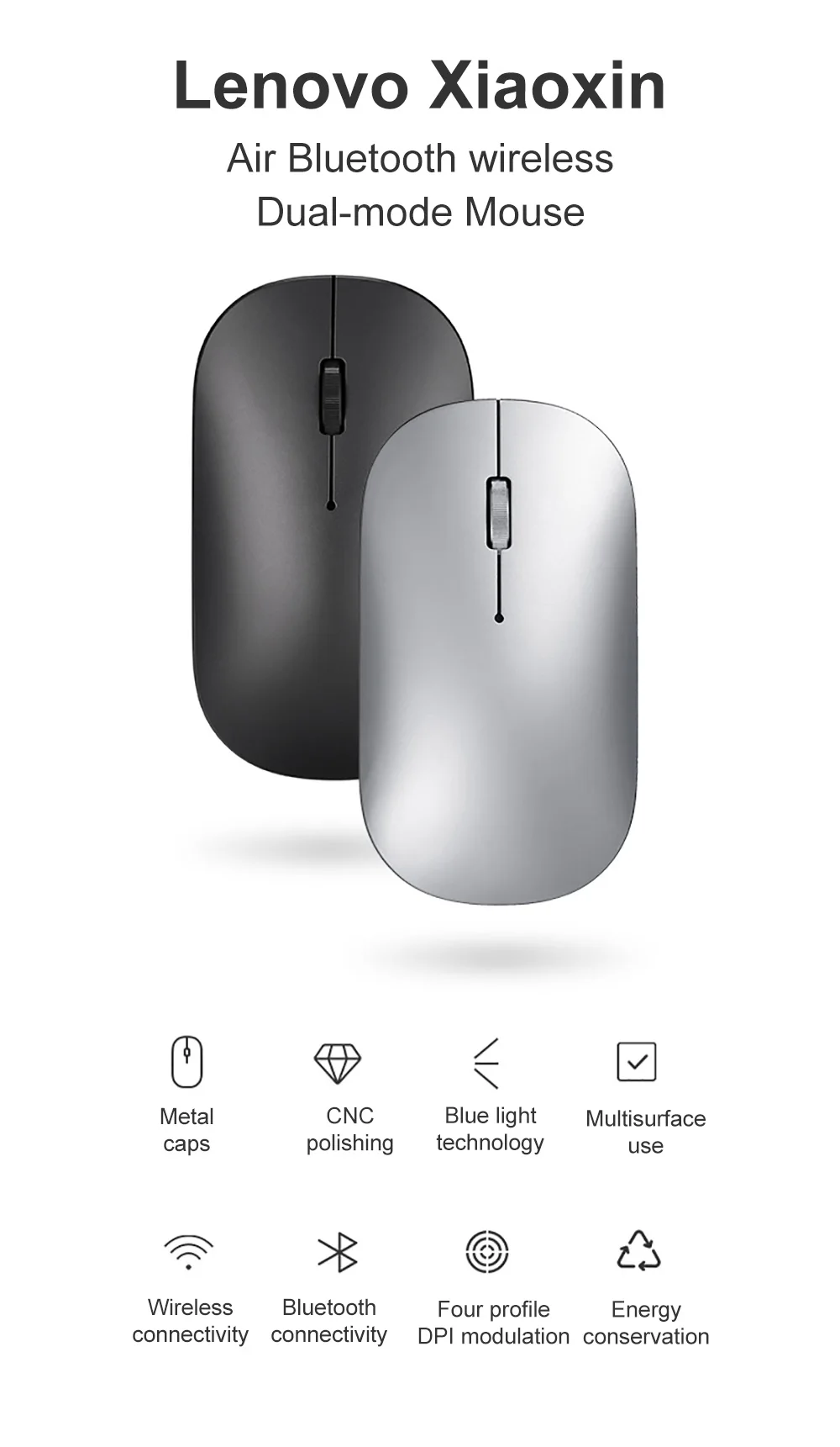 Оригинальная Беспроводная Bluetooth мышь Lenovo Mouse Xiaoxin Air2, Двухрежимная мышь 4000 точек/дюйм BT V5.0 Nano для ноутбуков ПК Win7/8/10 Mac