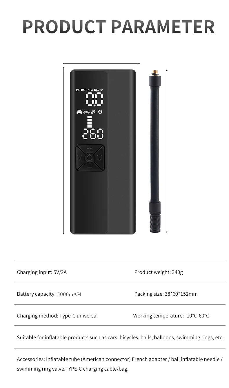 Different gas nozzles are presented to meet the pumping needs of different scenes. Not only can you inflate cars, but also can be used for balls, bicycles, motorcycles, boats, etc.
