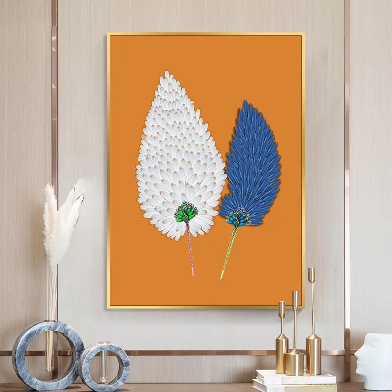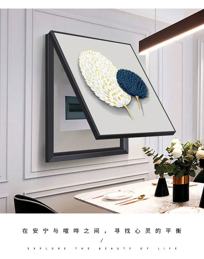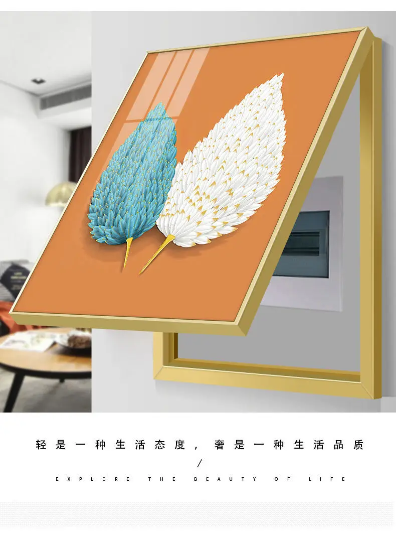 Вертикальная Современная электрическая коробка, украшение, картина, абстрактное перо, бесплатный Пробивной настенный Декор для дома, гостиной с рамкой, Мура