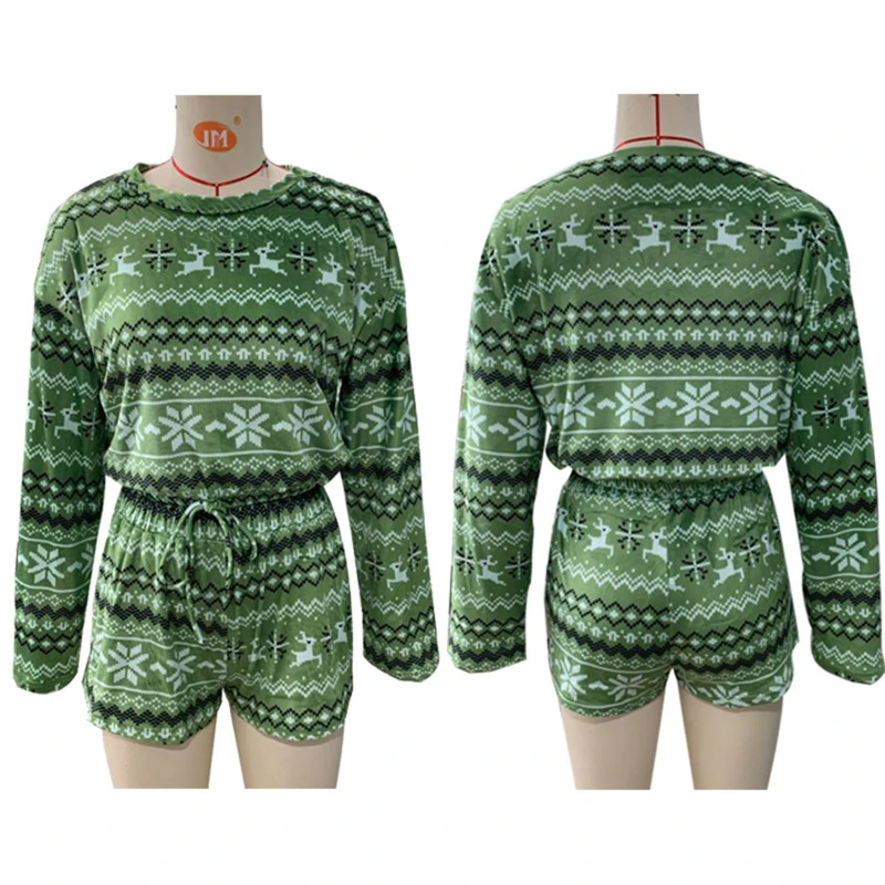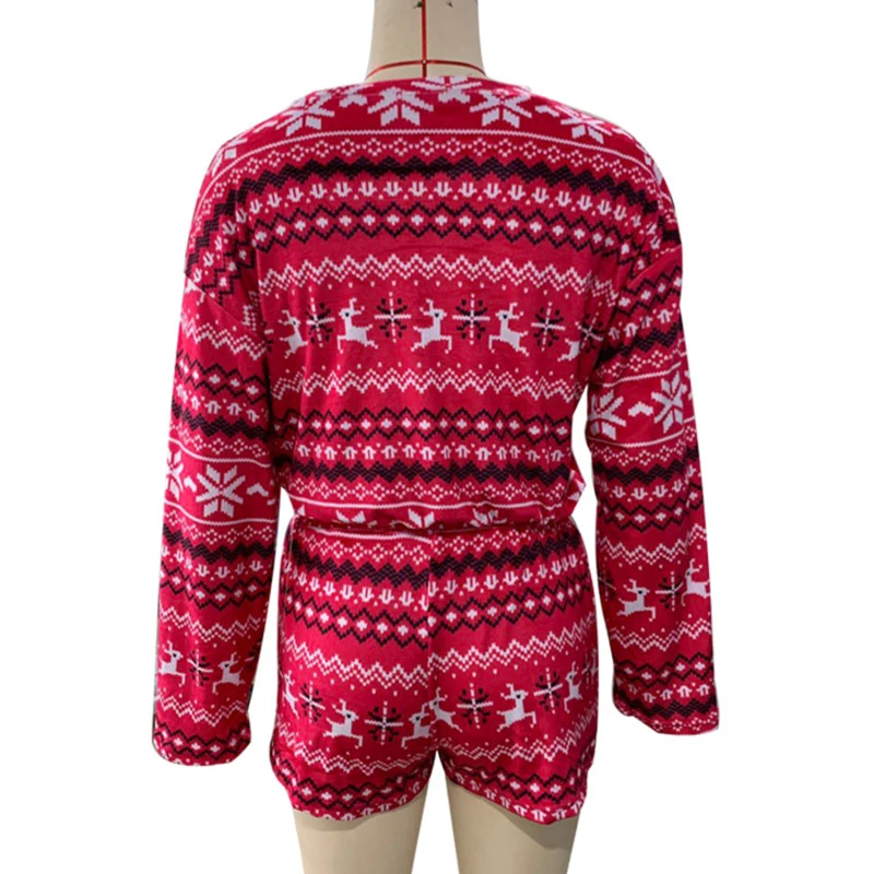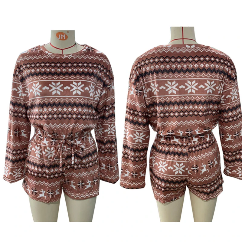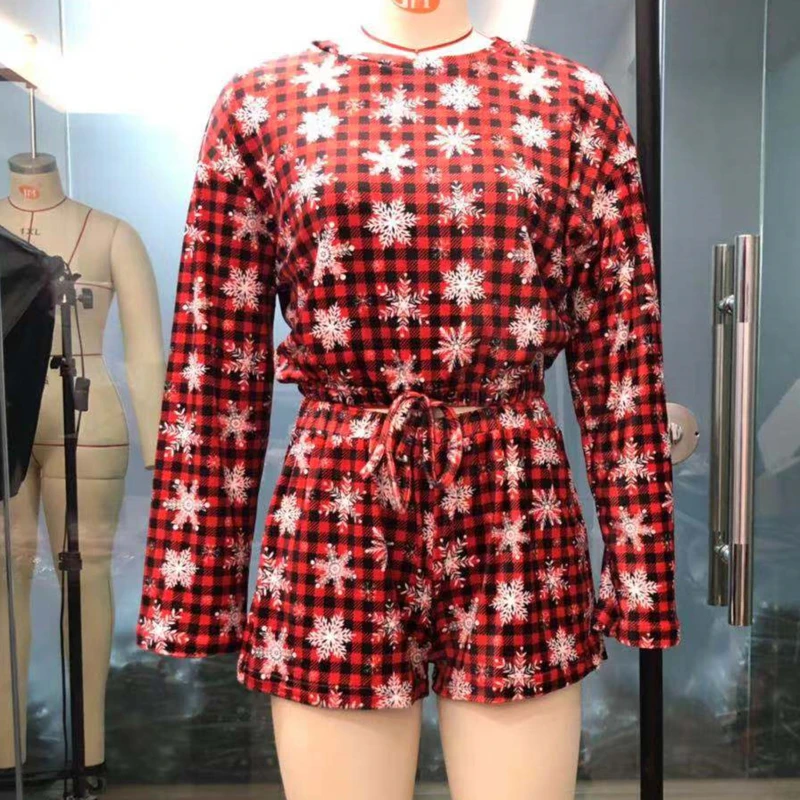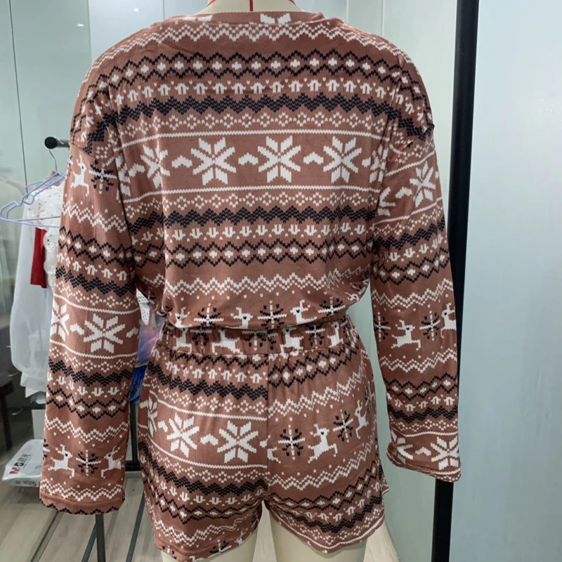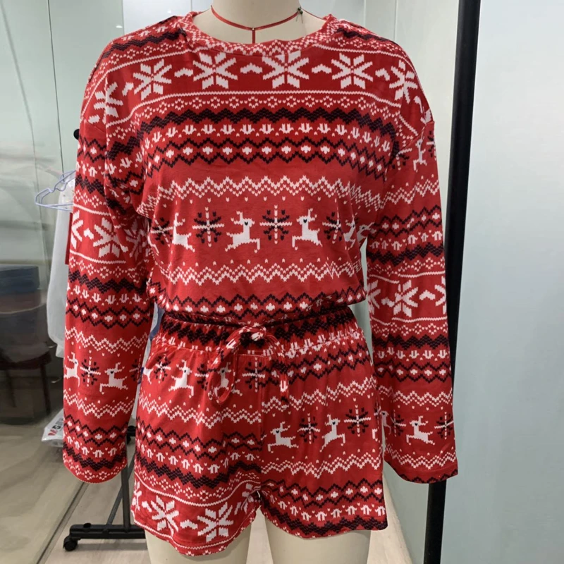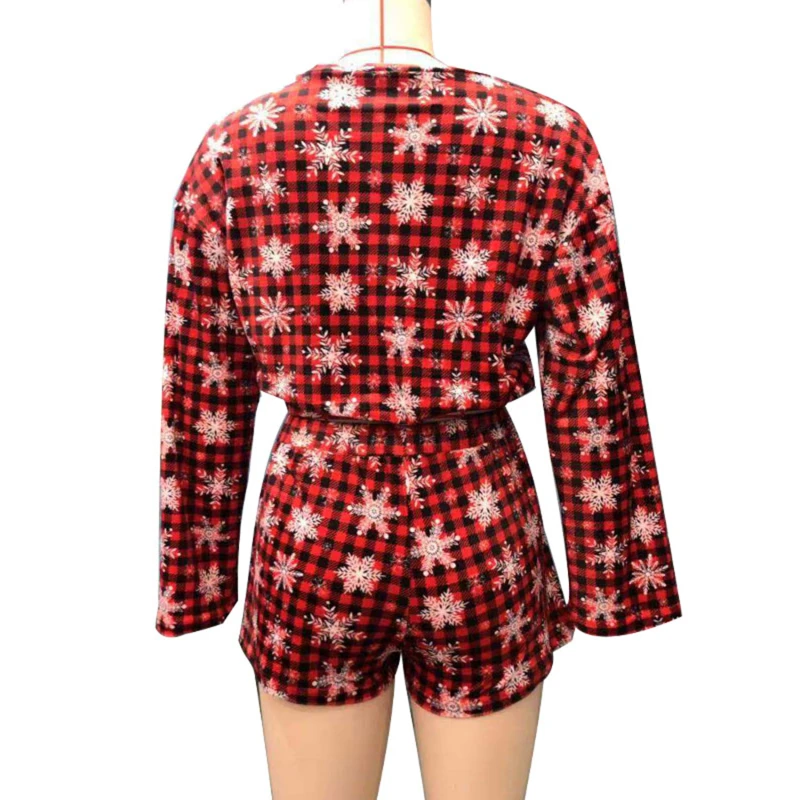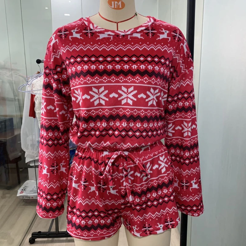 Новинка 2021, женские рождественские пижамные комплекты, укороченный топ с длинными рукавами и шорты, 2 предмета, Рождественская Снежинка с принтом, вязаная Осенняя домашняя одежда