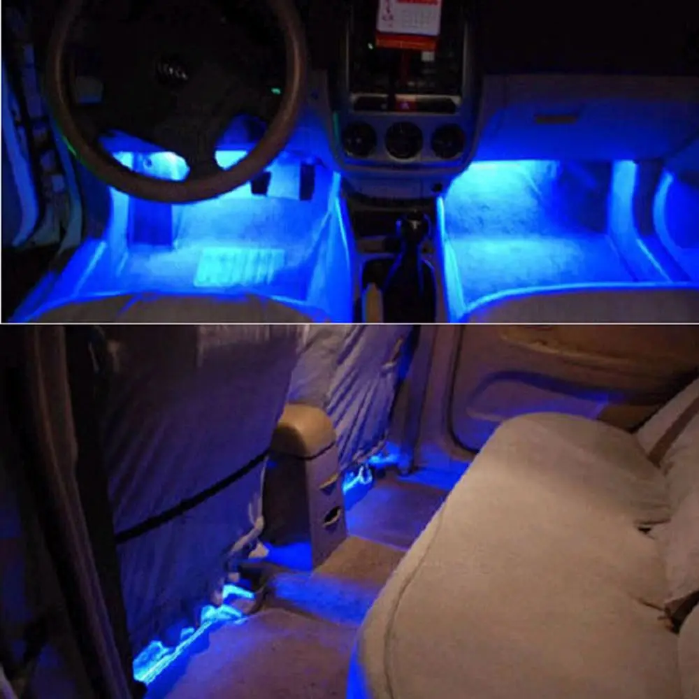 Один набор атмосферных огней, включая 4 светодиодный и 1 прикуриватель. Включение-выключение прикуривателя. Двусторонний клей для установки. Его можно использовать на интерьерном полу автомобиля или приборной панели. Добавьте бесконечную романтику к любимому автомобилю. Характеристики: Материал: АБС-пластик Излучаемый Цвет: синий Режим: обычно включен (без мигания) Напряжение: 12 В постоянного тока Ток: 80 мА (20 мА * 4) Способ установки: он может быть подключен к прикуривателю без каких-либо изменений. Светодиодный Размер: 10*2*0,4 см (3,9*0,8*0,2 ") Каждый светодиодный Длина кабеля: прибл. 2 м/6,6 футов Посылка включает в себя: 1 комплект из 4 светодиодный декоративных светильников для интерьера