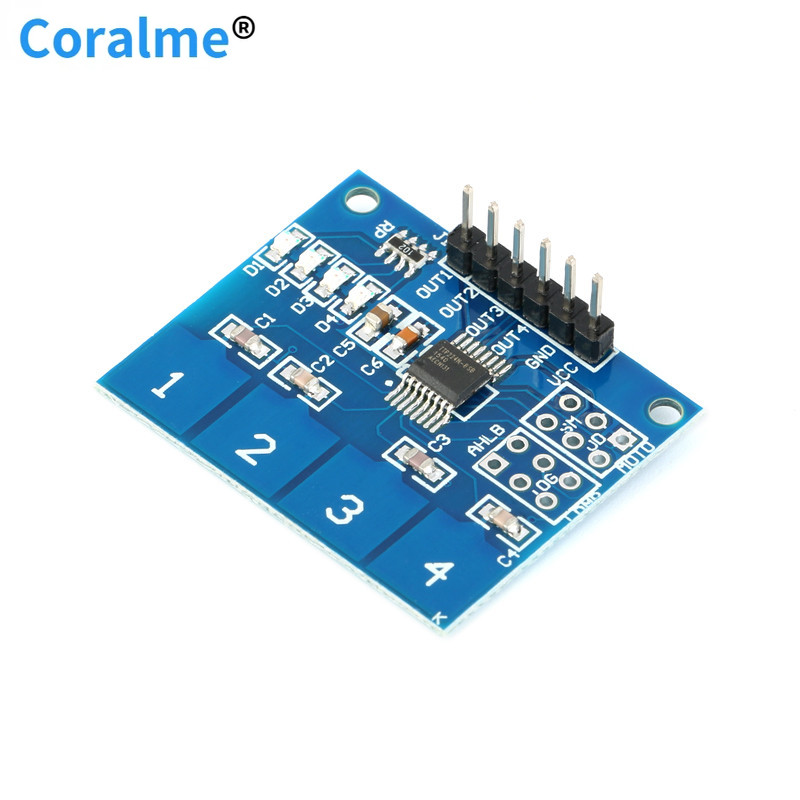 1. Рабочее напряжение: 2,4 V-5,5 V 2. 4 индикатора состояния уровня платы 3. Размер платы PCB: 35 (мм) x29 (мм) 4. TTP224 емкостный сенсорный сенсор IC 4 клавиши 5. Модуль может установить выходной режим, ключевой выходной режим, максимальное время вывода и быстрый/Низкий выбор мощности