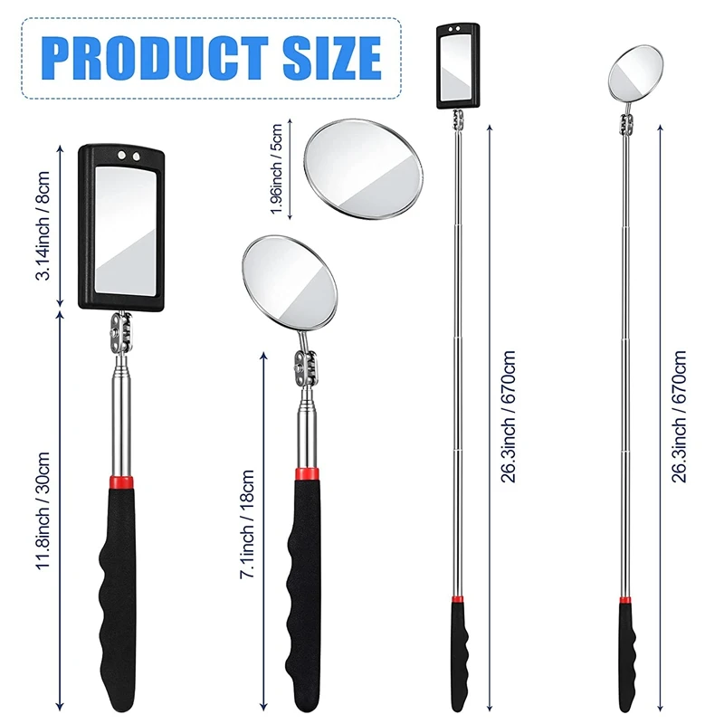 Акция! 4 шт. телескопическое зеркало для осмотра светодиодный светильник гибкое зеркало для осмотра круглое зеркало квадратный инструмент для проверки зеркала