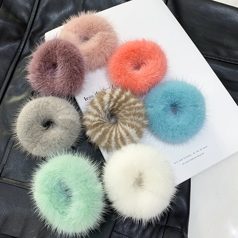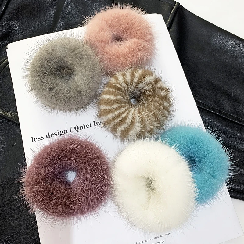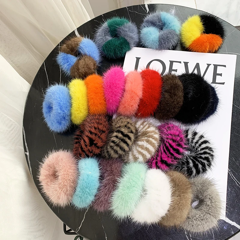 Роскошная лента для волос из натурального меха норки, держатель для волос, пушистая плюшевая повязка для волос, кольцо для волос, держатель для хвоста, аксессуары для волос из натурального меха