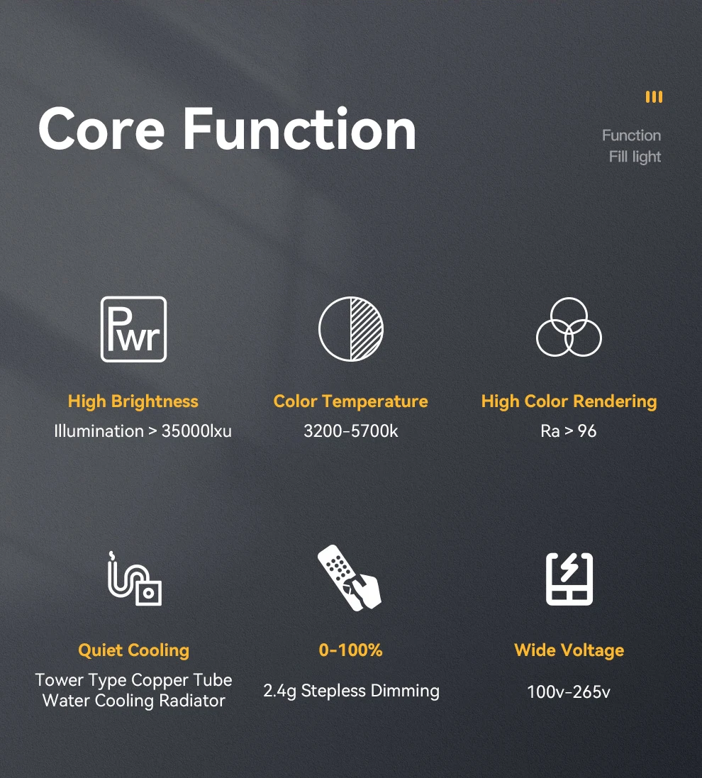 Высокая мощность 300 Вт обеспечивает стабильную и сильный светильник источник, осветительная панель для телевещания с высоким CRI>96 +, убедитесь, что в настоящее стихийных бедствий и туры Цвет эффект. Указание впечатляющие точность в Цвет исполнение.