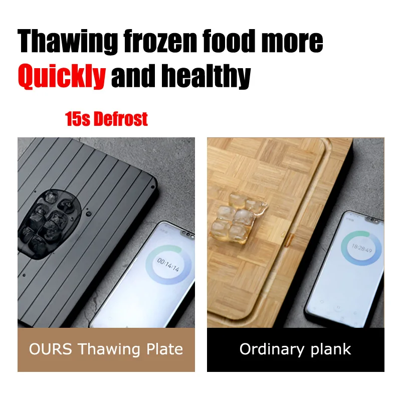 3. Принцип: тарелка для разморозки-это специальный сплав с теплопроводностью в 20000 раз больше, чем у обычных металлов. Он может осуществить высокоскоростной теплообмен и сделать замороженные продукты получить самый быстрый естественный эффект таяния.