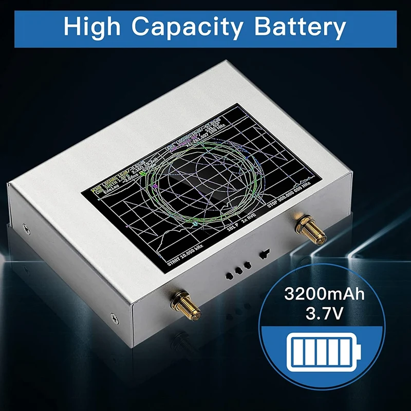 [Премиум и Сверхдолгий Срок службы батареи]-изготовлен из твердого алюминиевого защитный чехол, делает его более сильным и портативный. Кроме того, VNA имеет четкий экран и идеальный размер, прост в использовании и понятен. Встроенный литиевый аккумулятор 3200 мАч с сверхдолгим сроком службы. Есть Светодиодный индикатор для электричества в задней части VNA, а ближайший к разъему порта CH1-самый низкий уровень заряда, указывающий на менее чем равный 25%.