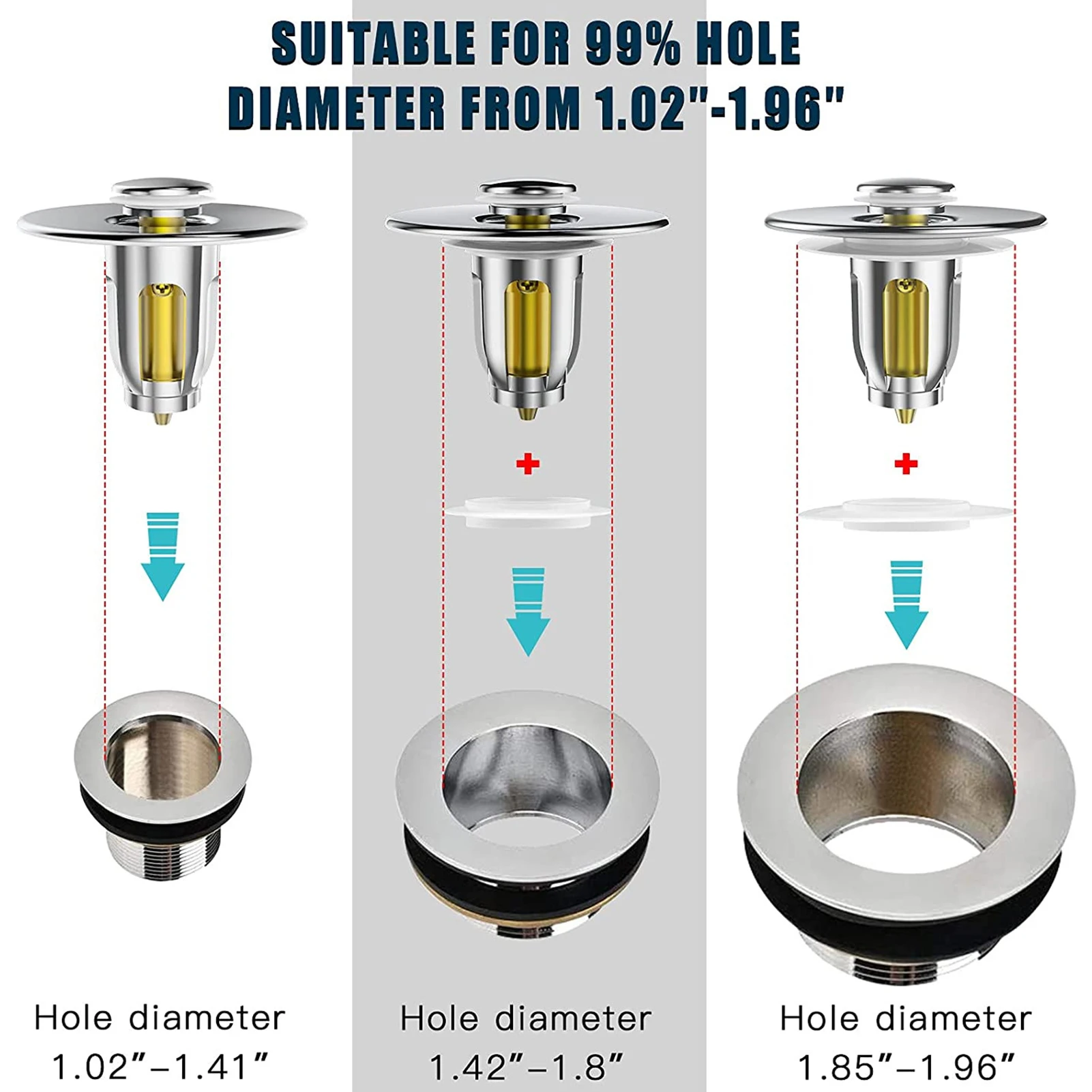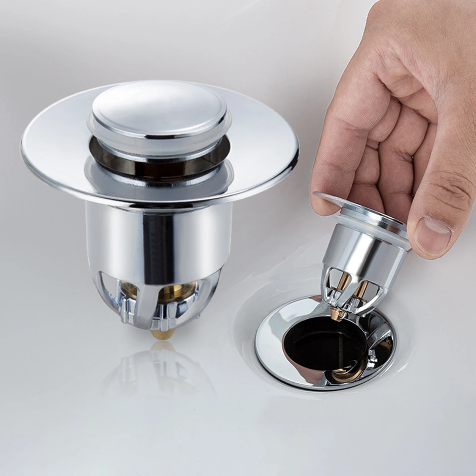 Universal Sink Stopper Stainless Steel Bullet Core Push Type Basin Pop-up Drain Filter With Basket Anti-clogging Sink Drain Plug