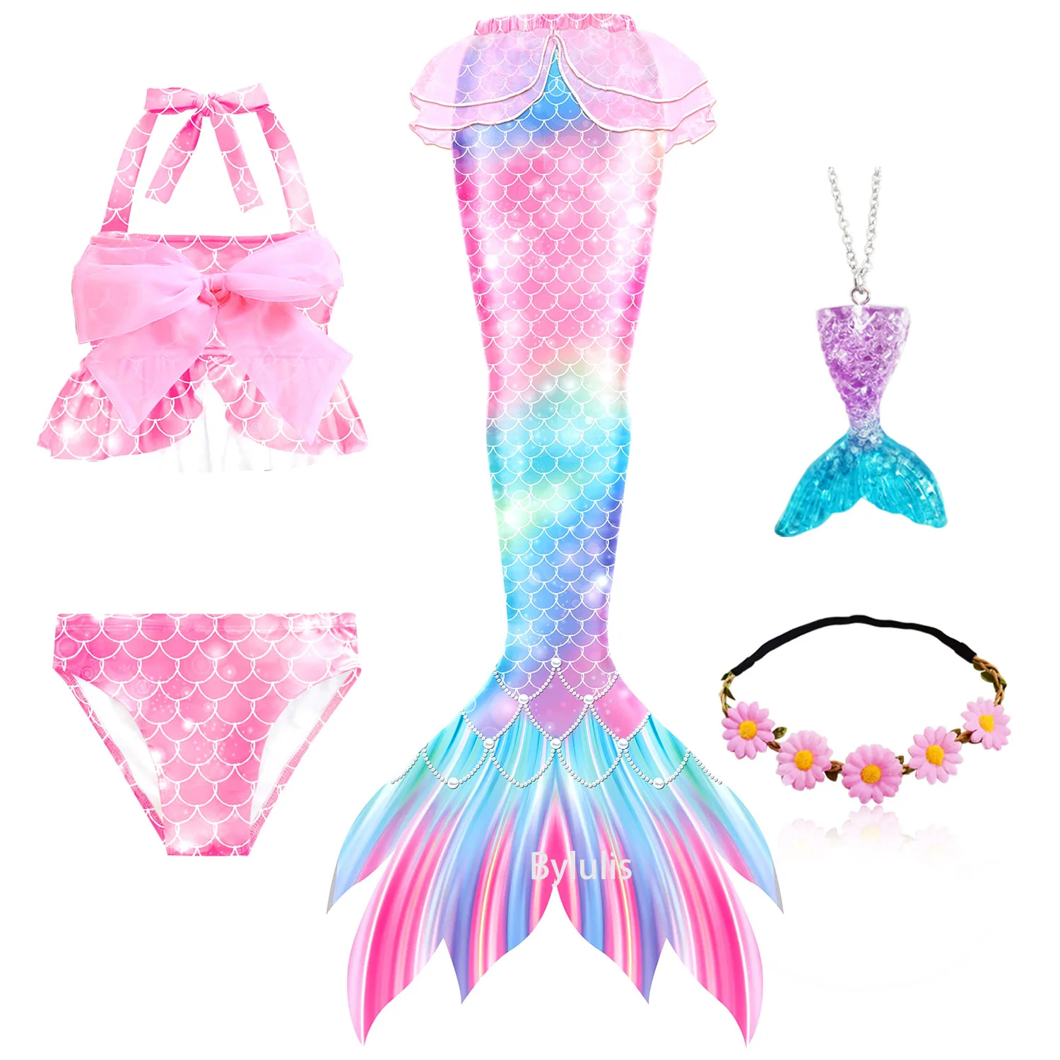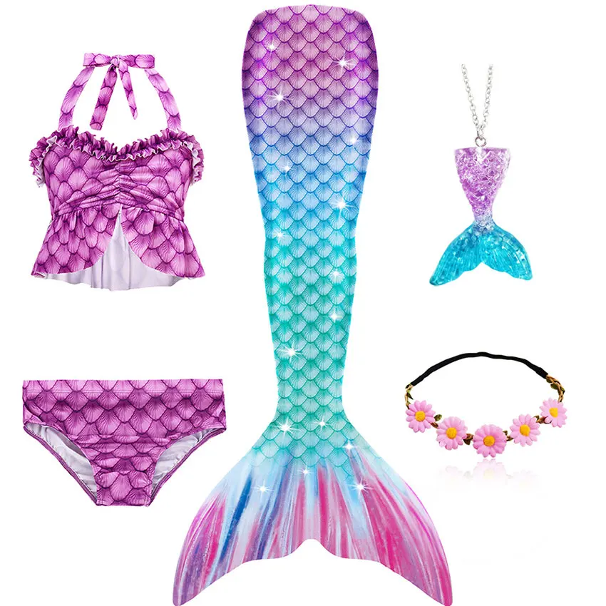 Комплект 1: 1 * хвост русалки + 1 * бюстгальтер + 1 * шорты + 1 гирлянда + 1 * ожерелье с русалкой