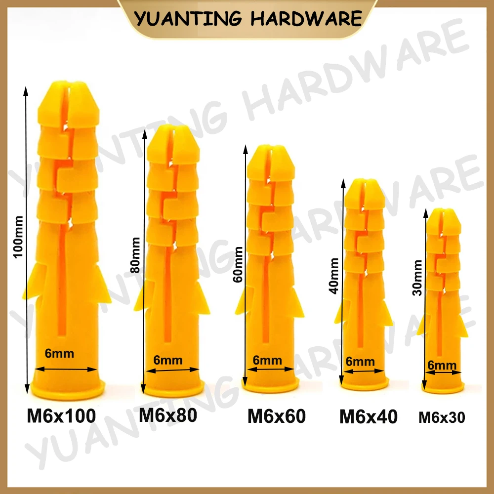 10 шт.-100 шт. M6 M8 M10 Желтая стена пластиковые анкерные болты Расширительная Труба для нарезания шнека колонна бетонная настенная вилка рамка фиксирующая трубка