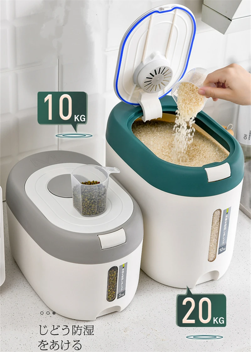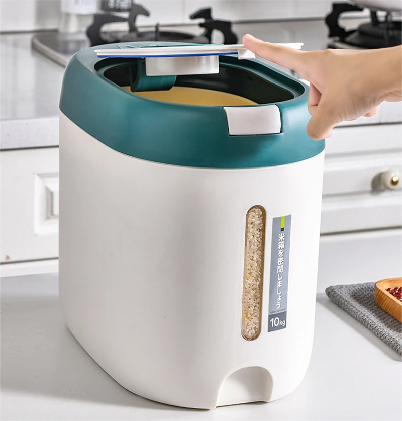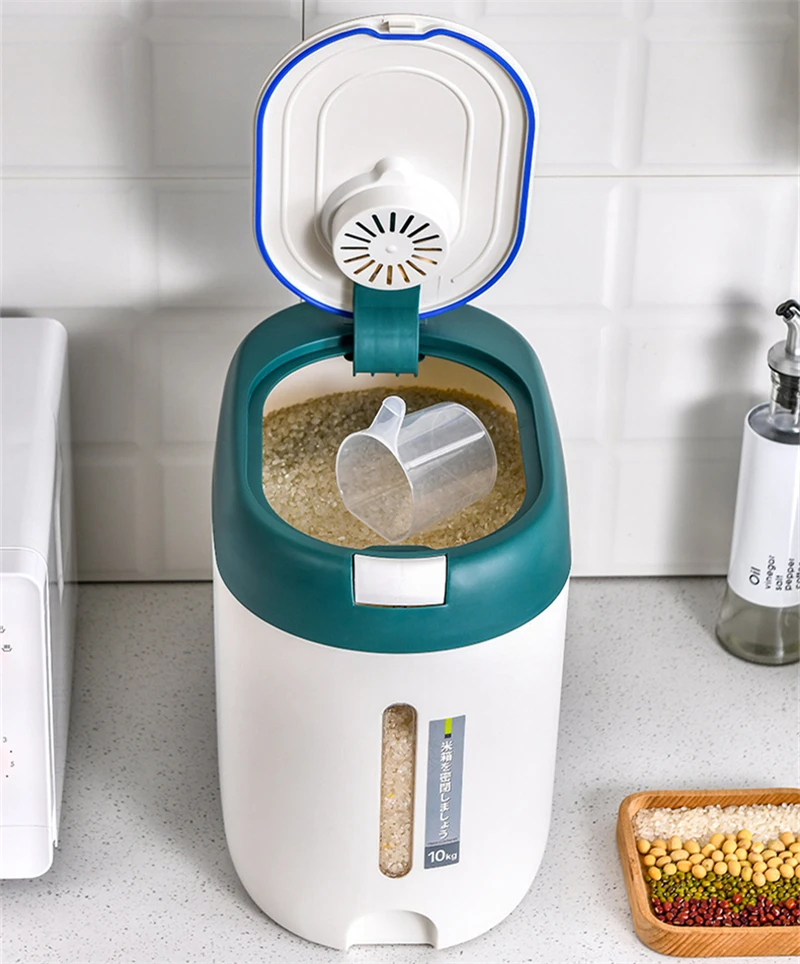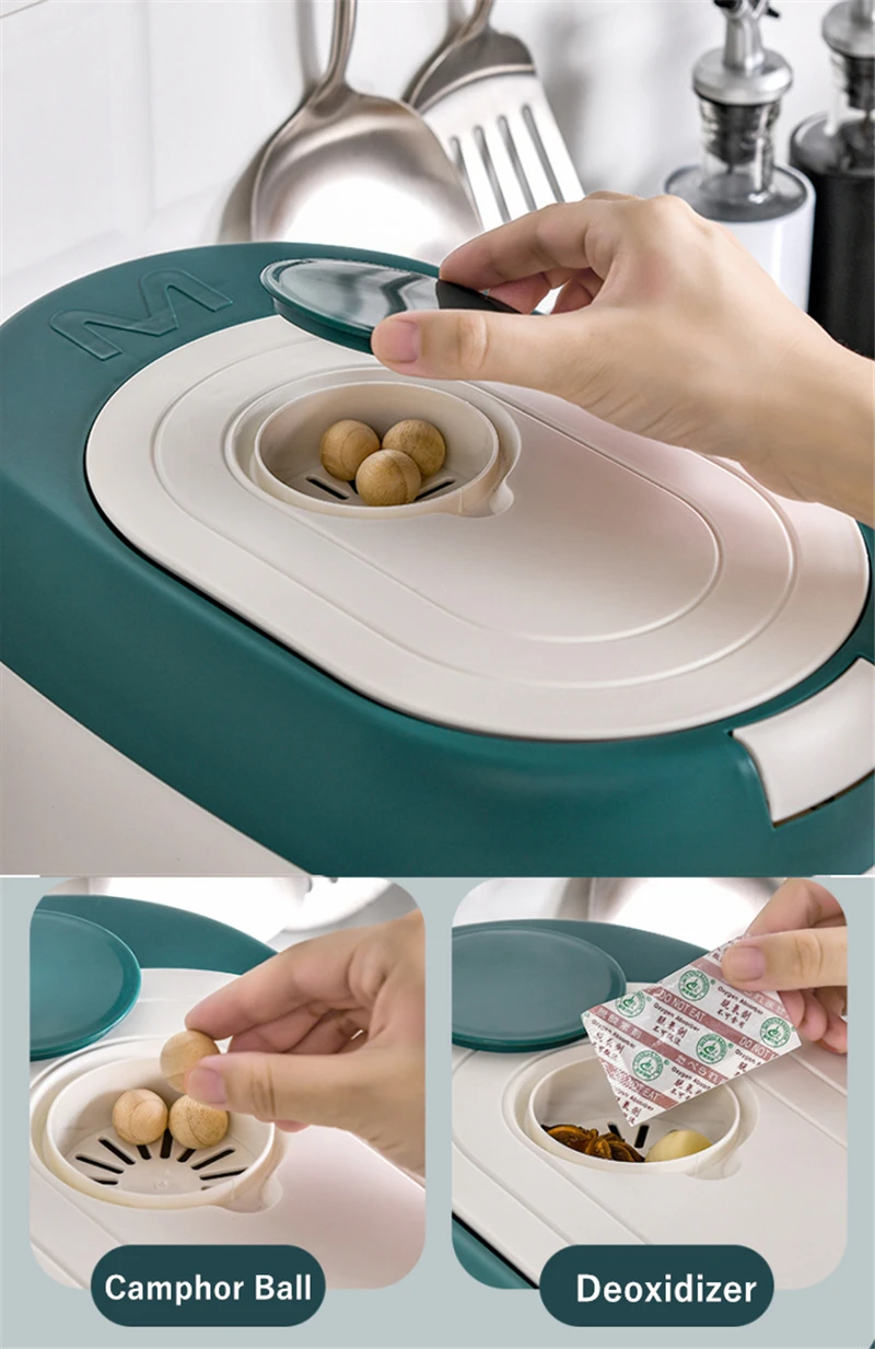 3. На верхней части ведра для риса есть коробка с защитой от насекомых. Шарики камфоры или деоксидизатор можно положить в него, что позволяет сохранить еду сухой и свежей в течение длительного времени.