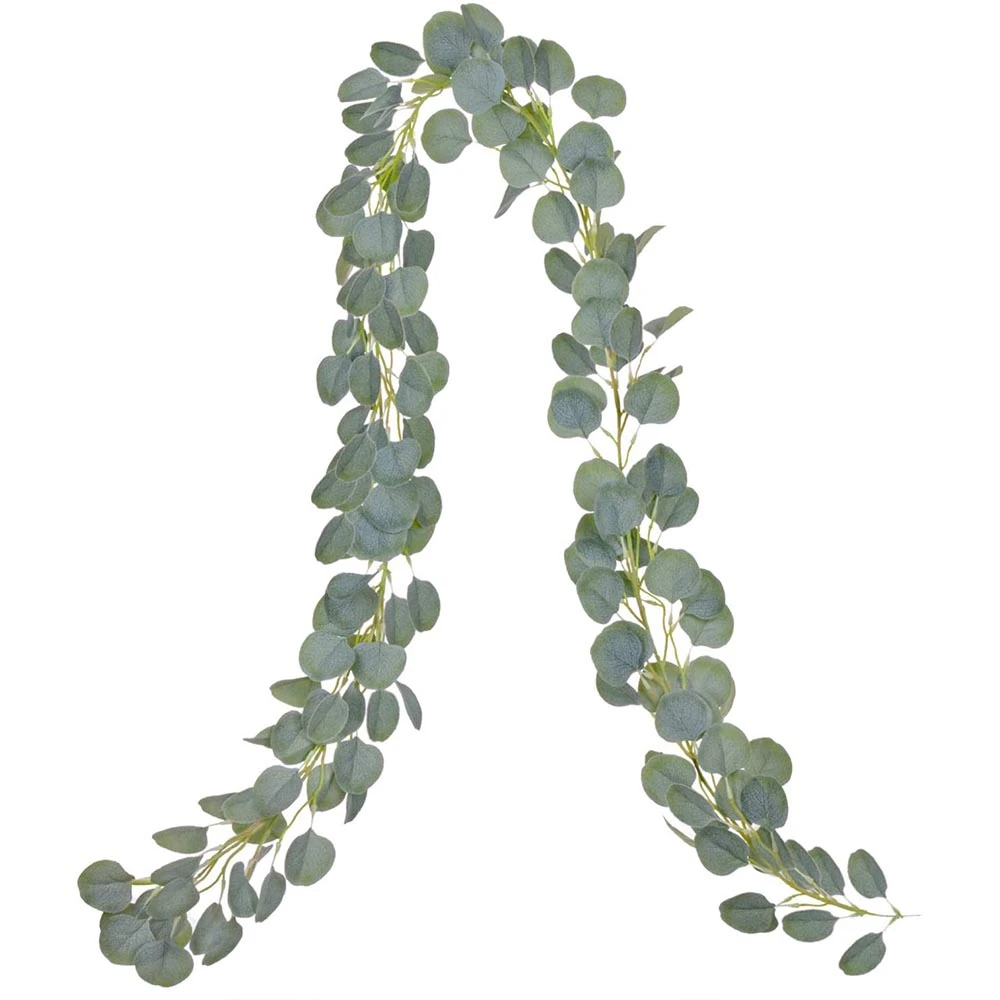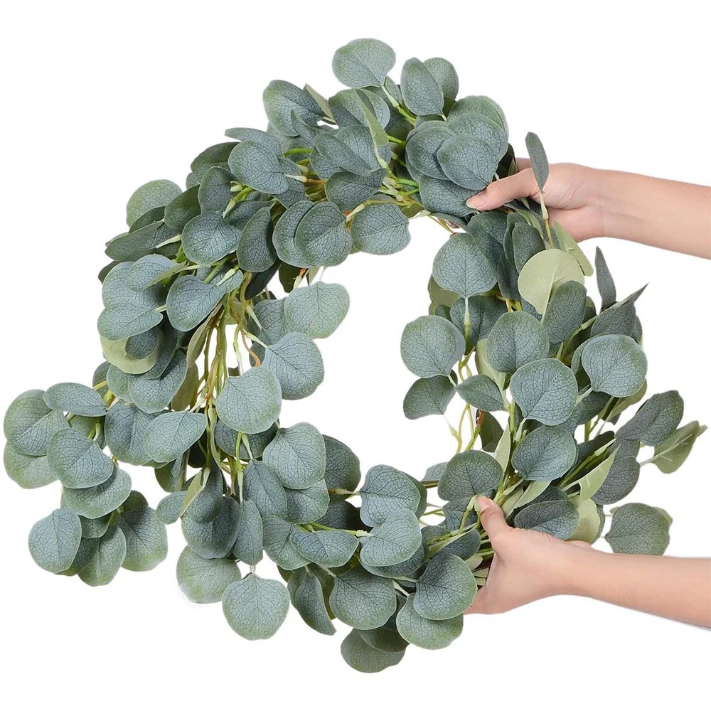 2. Венок из листьев эвкалипта, каждый венок из эвкалипта имеет 150 листьев эвкалипта, которые выглядят очень реалистично и трехмерно. Каждый зеленый венок составляет около 6 футов (около 1,8 м).