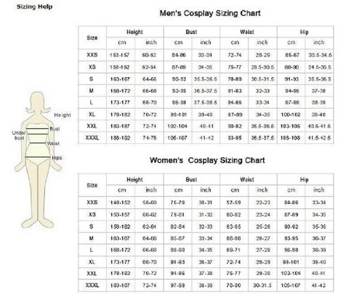 Измерения (рост, вес, грудь, длина плеч, плеча, талии и бедер).