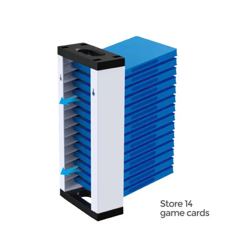 • The white minimalist design, the disc rack can hold 14 game discs.