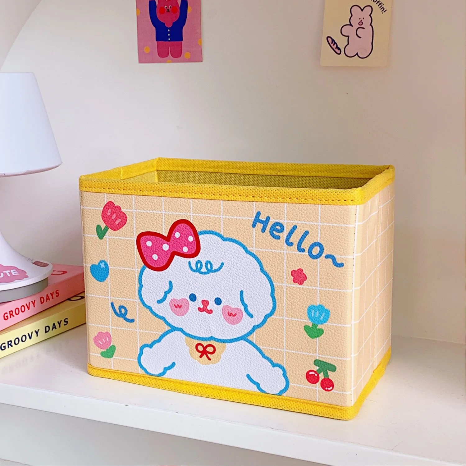 Kawaii Bear кожаный Настольный органайзер канцелярский складной ящик для хранения кисточка для макияжа украшение корзина школьные канцелярские принадлежности