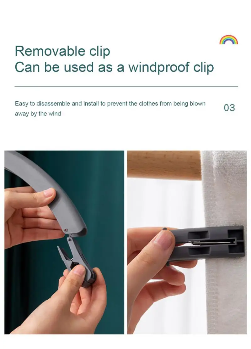Зажим съемный и может использоваться в качестве ветронепроницаемого зажима. Его можно легко разобрать и установить, чтобы одежда не была сдута ветром.