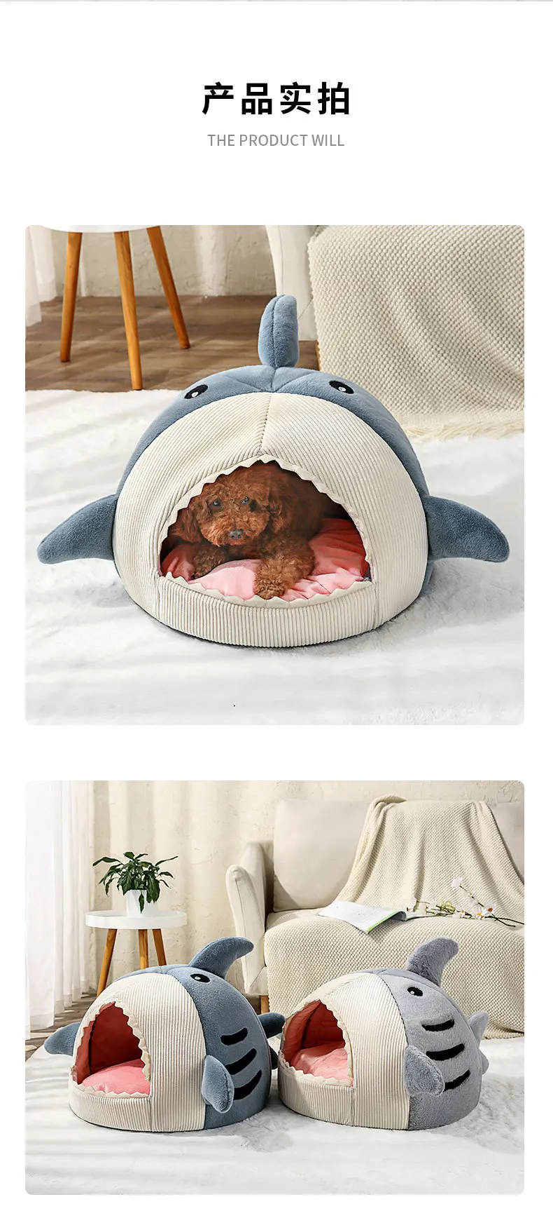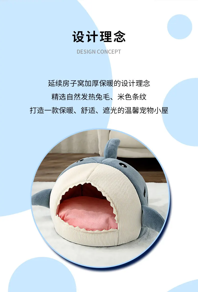 Cute Shark Pattern Cat Sleeping Bed Four Seasons Warm Comfortable Semi-enclosed Pet House New Fashion Cat Nest Pet Accessories