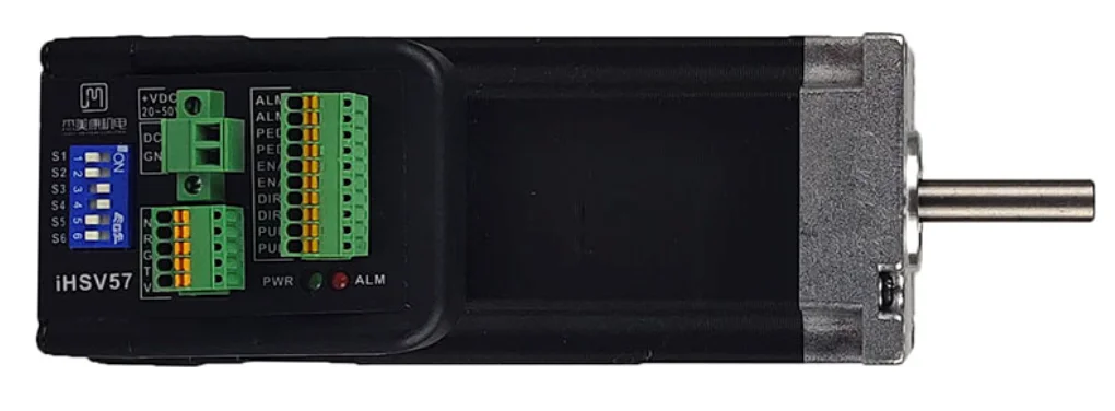 IHSV57-XX интегрированный серводвигатель переменного тока идеально интегрирован серводвигатель переменного тока в серводвигатель, принимает векторное управление в чипе DSP, особенности по низкой цене, полный замкнутый цикл, все цифровые, низкое тепло, небольшая вибрация, И высокий отклик, а также включает в себя три регулируемые отзывы режимов управления петлями (петля postition, петля скорости, И текущий цикл). iHSV57-XX-это серия стабильных и экономичных продуктов контроля движения.