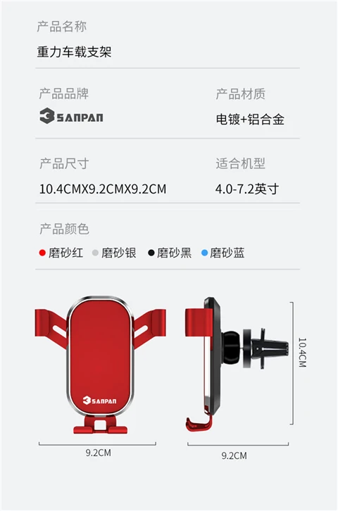 Universal anti-skid car phone holder air socket mounting clip adjustable mobile phone aluminum bracket global positioning system