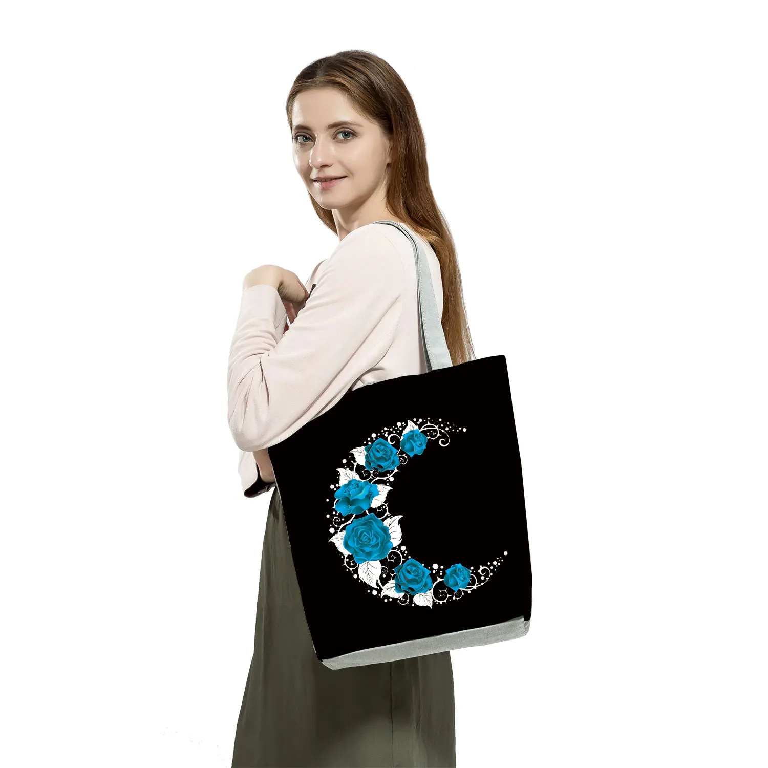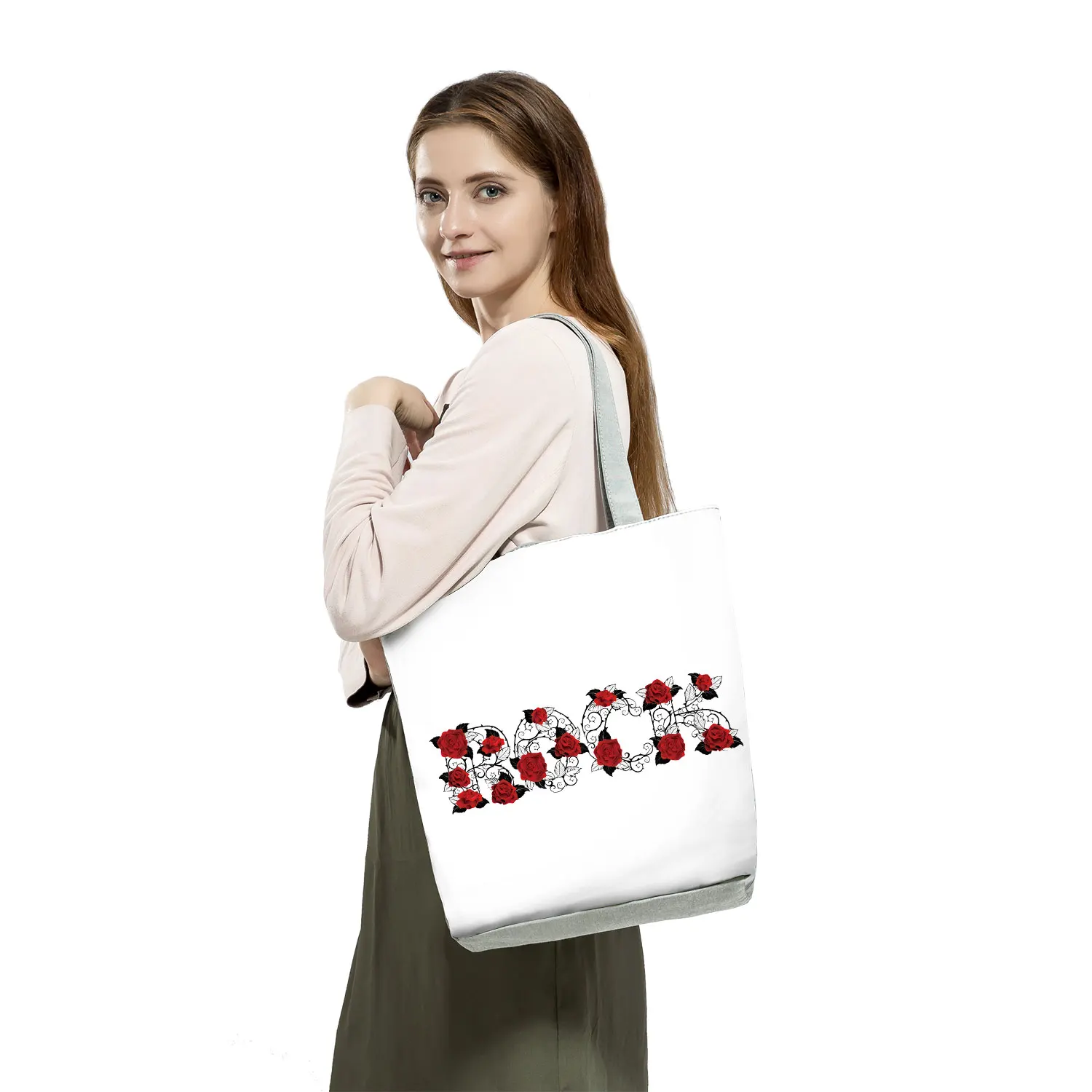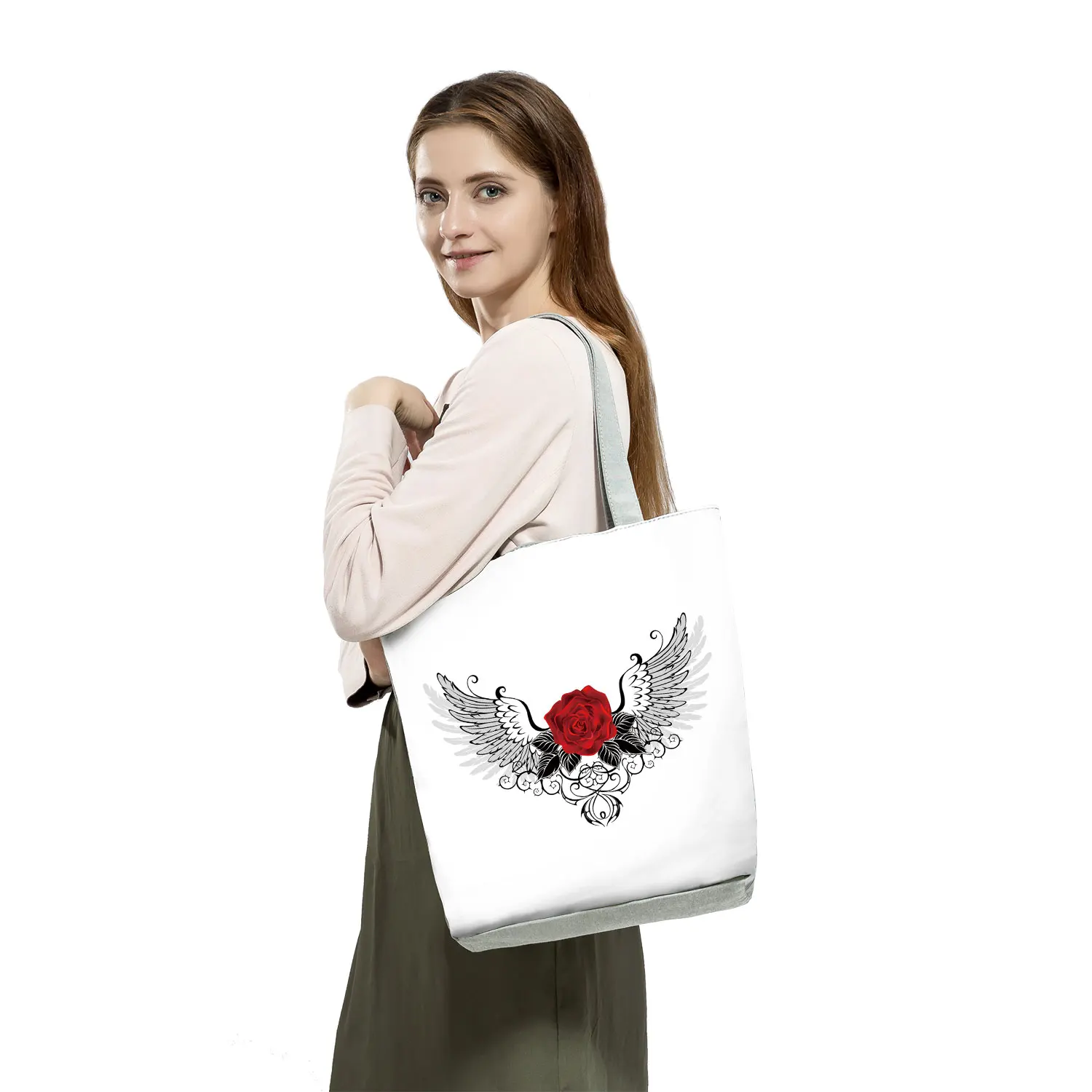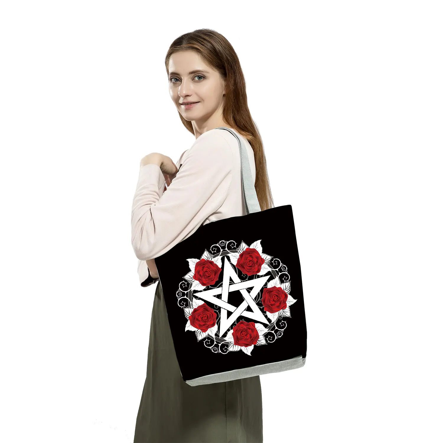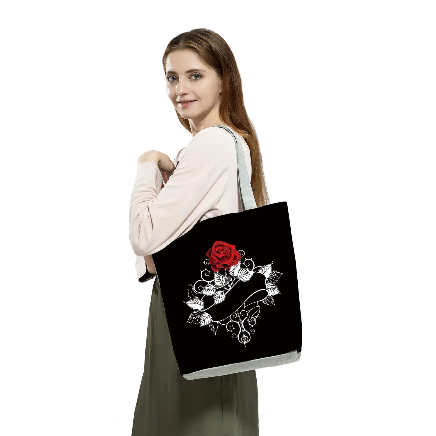 Новая модная женская черная сумка-тоут красная роза с принтом музыкальных нот, сумка через плечо Harajuku, милая графическая сумка, вместительная сумка для покупок