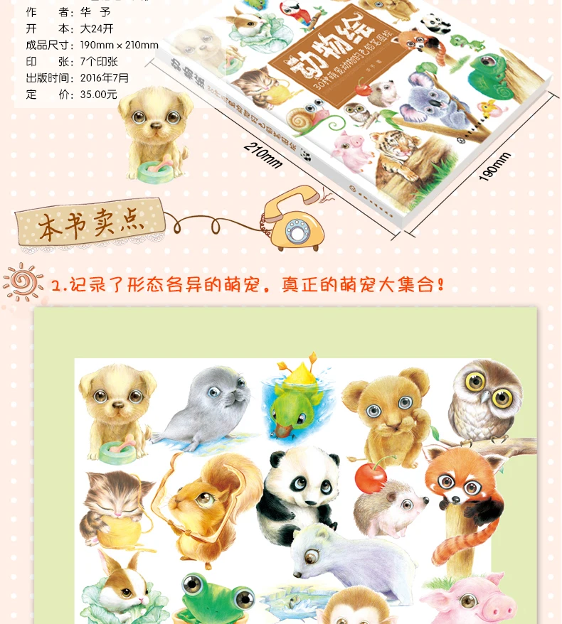 Книга для рисования животных-30 видов милых домашних животных, цветные карандашные книги, базовая вводная техника, художественная книга