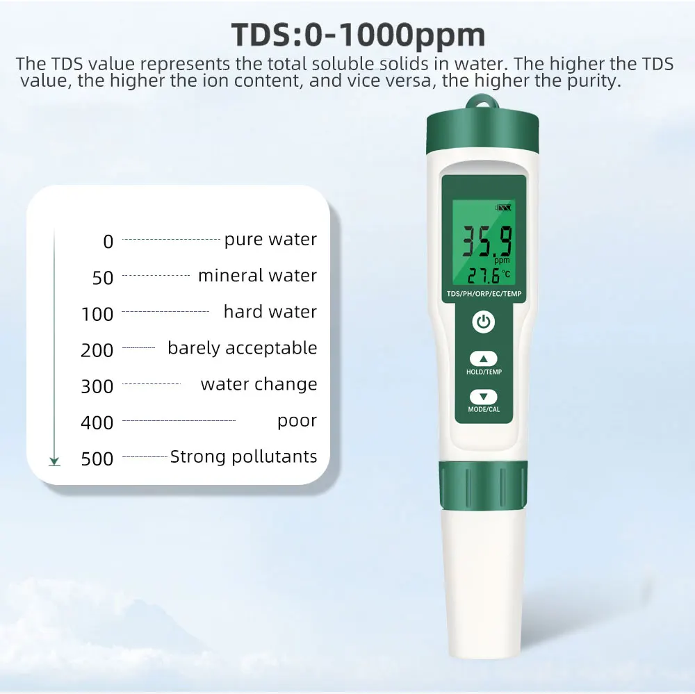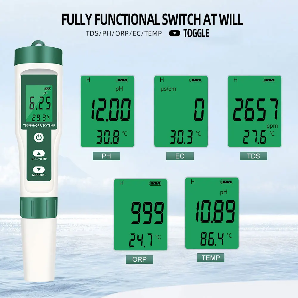 МерыPH,TDS,TEMP,EC,Salinity,SG,ORP.