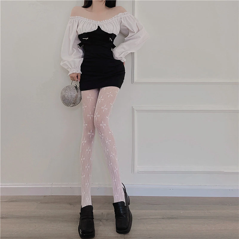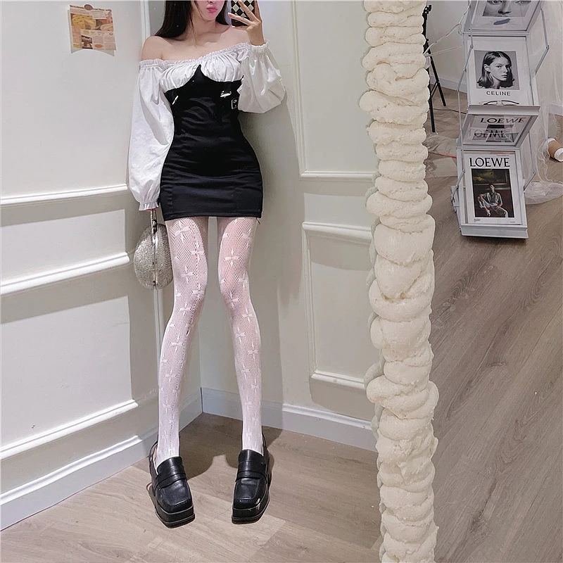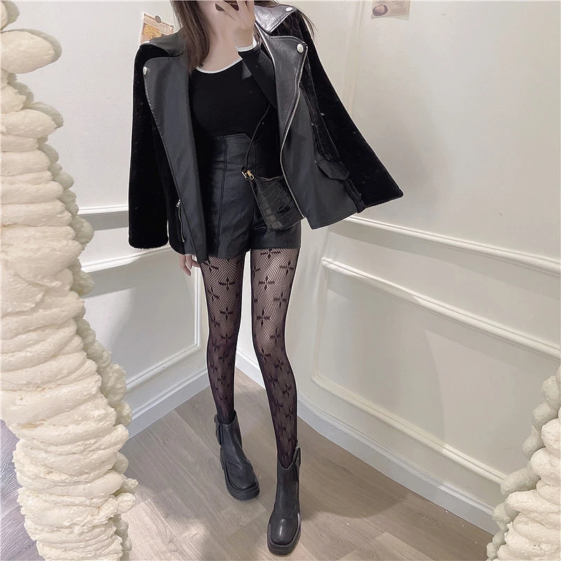 Сексуальные женские колготки, черные колготки с четырехлистным клевером, кружевные полые чулки в сетку, сексуальные черные сетчатые колготки