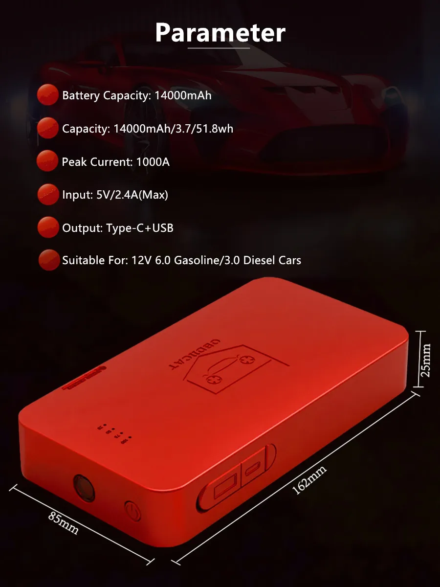 Пусковое устройство OBDIICAT D16 14000mah 1000A