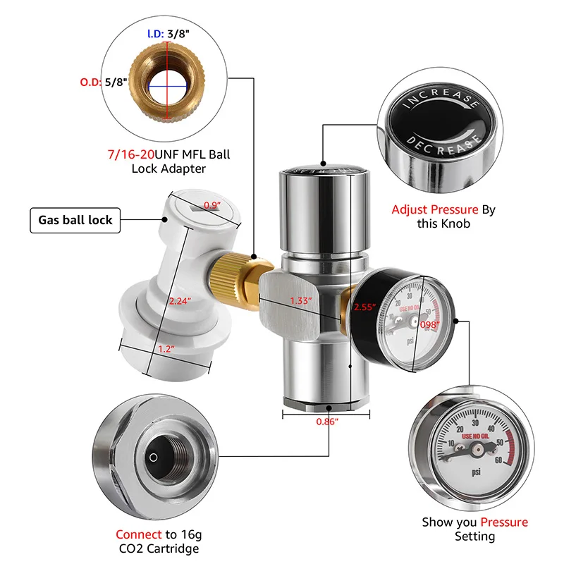 ☀С манометром (0-60psi), Лучше всего для установки и регулировки давления