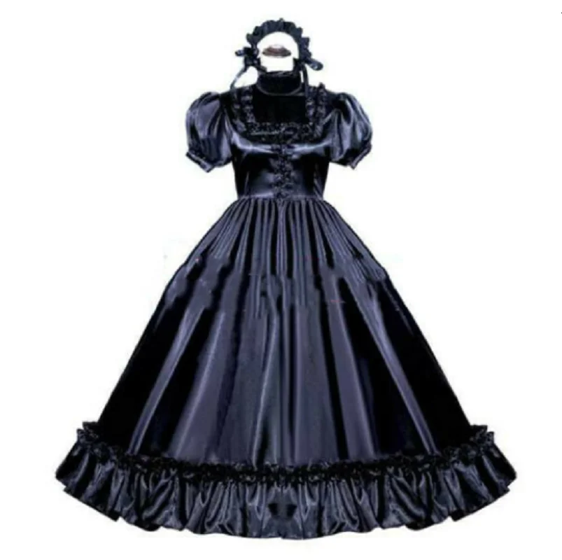 Французская горничная Сисси запираемое черное атласное платье униформа косплей костюм на заказ